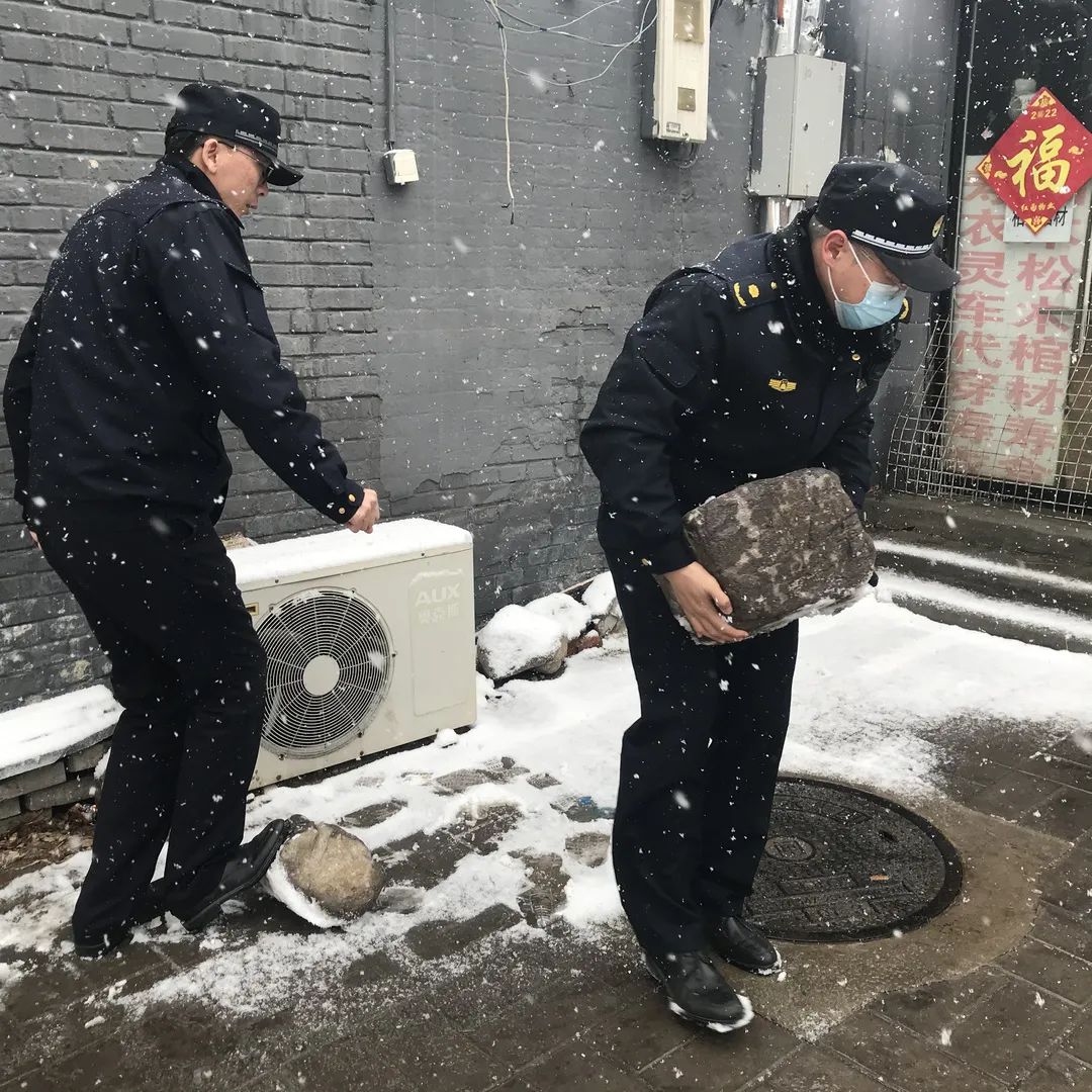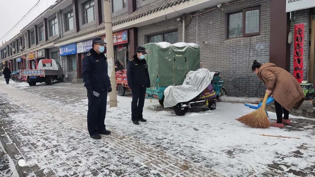 延庆镇上下闻“雪”而动,快速响应,机关干部、45个街村“两委”干部、党员及保洁员齐上阵,第一时间行动,对镇政府责任区、辖区主要路段、街村进村路及背街小巷路面进行全面清扫。镇综合执法队加强检查,督促辖区商户落实“门前三包”责任,及时开展扫雪铲冰工作。