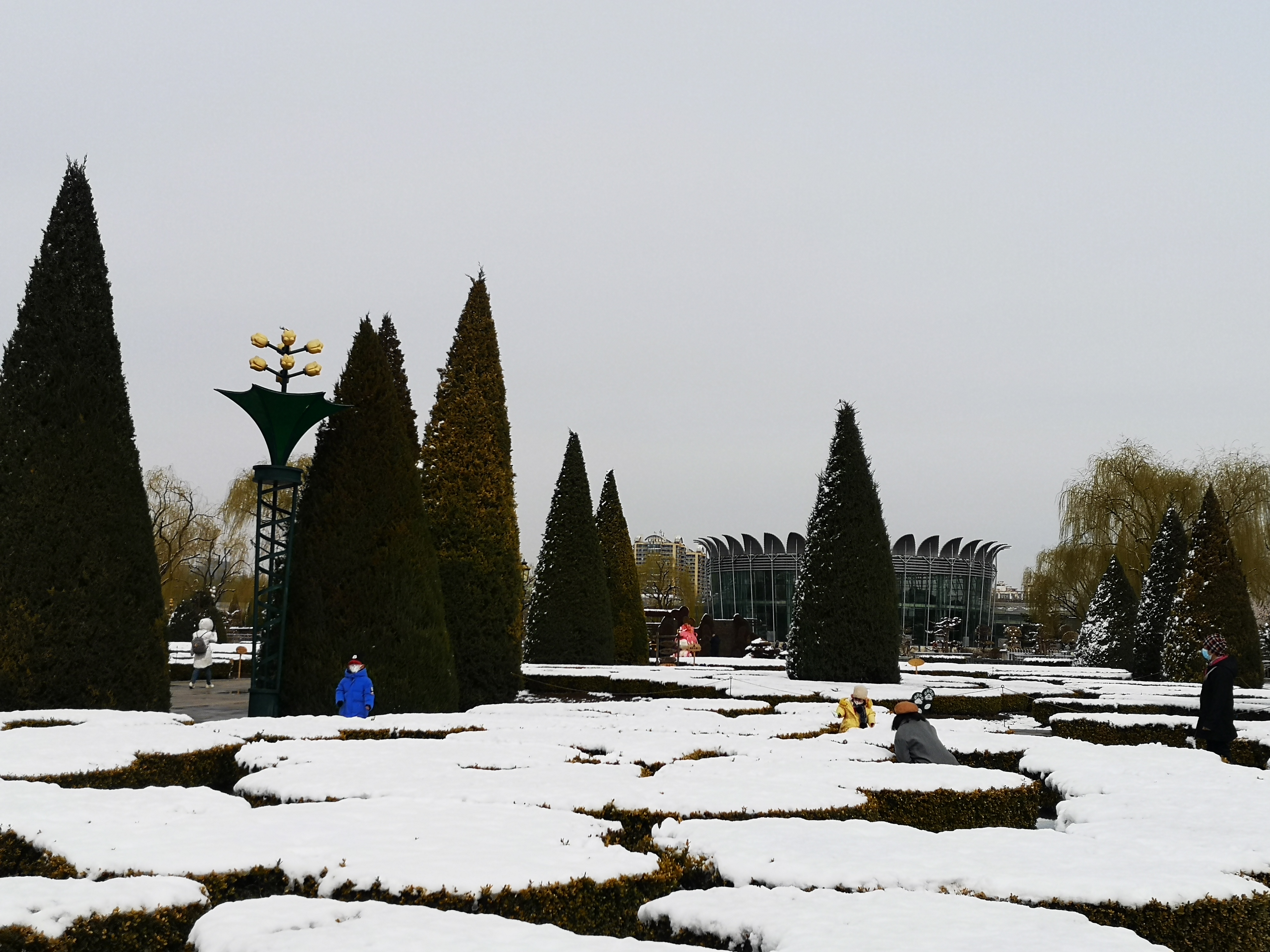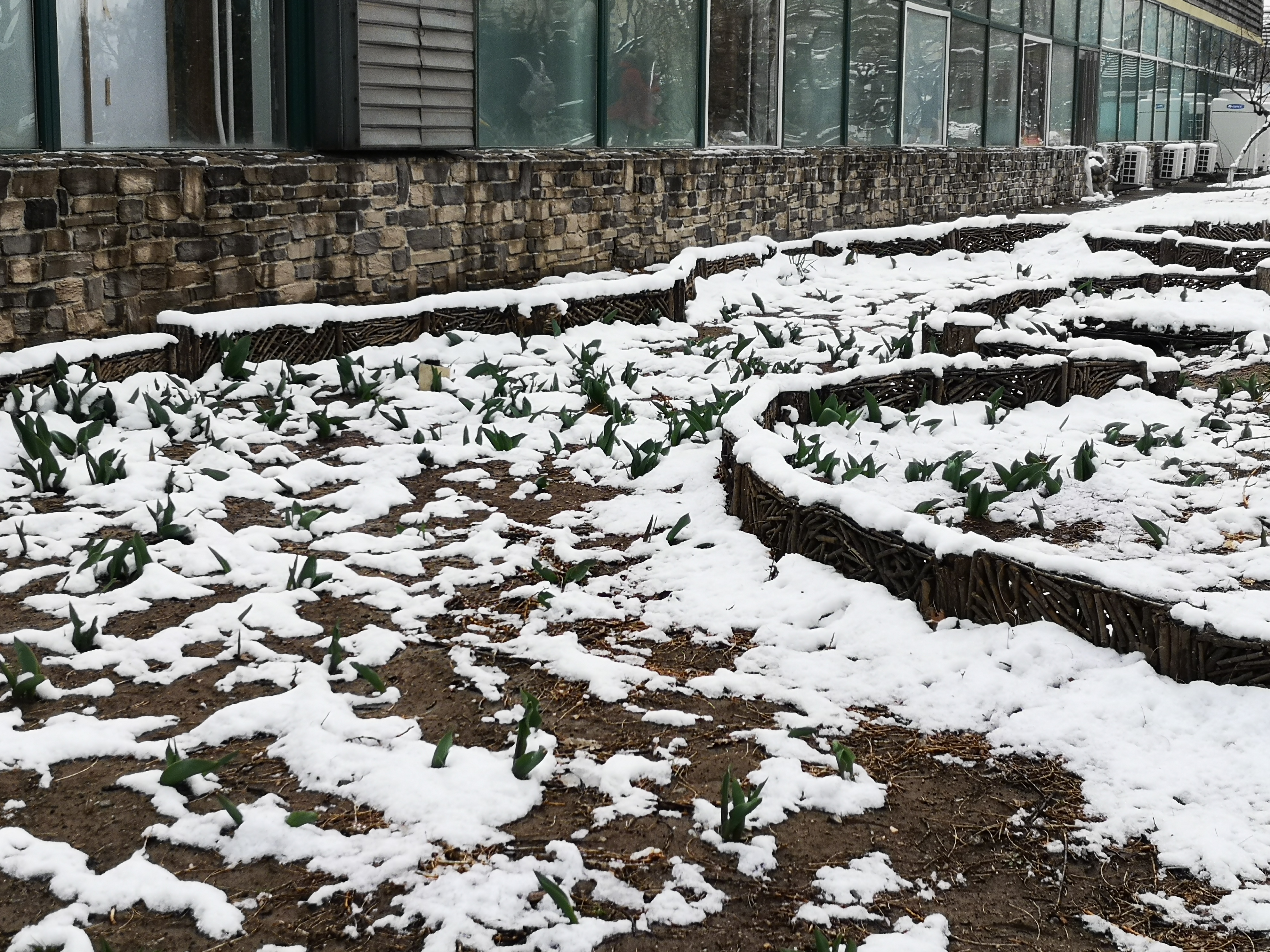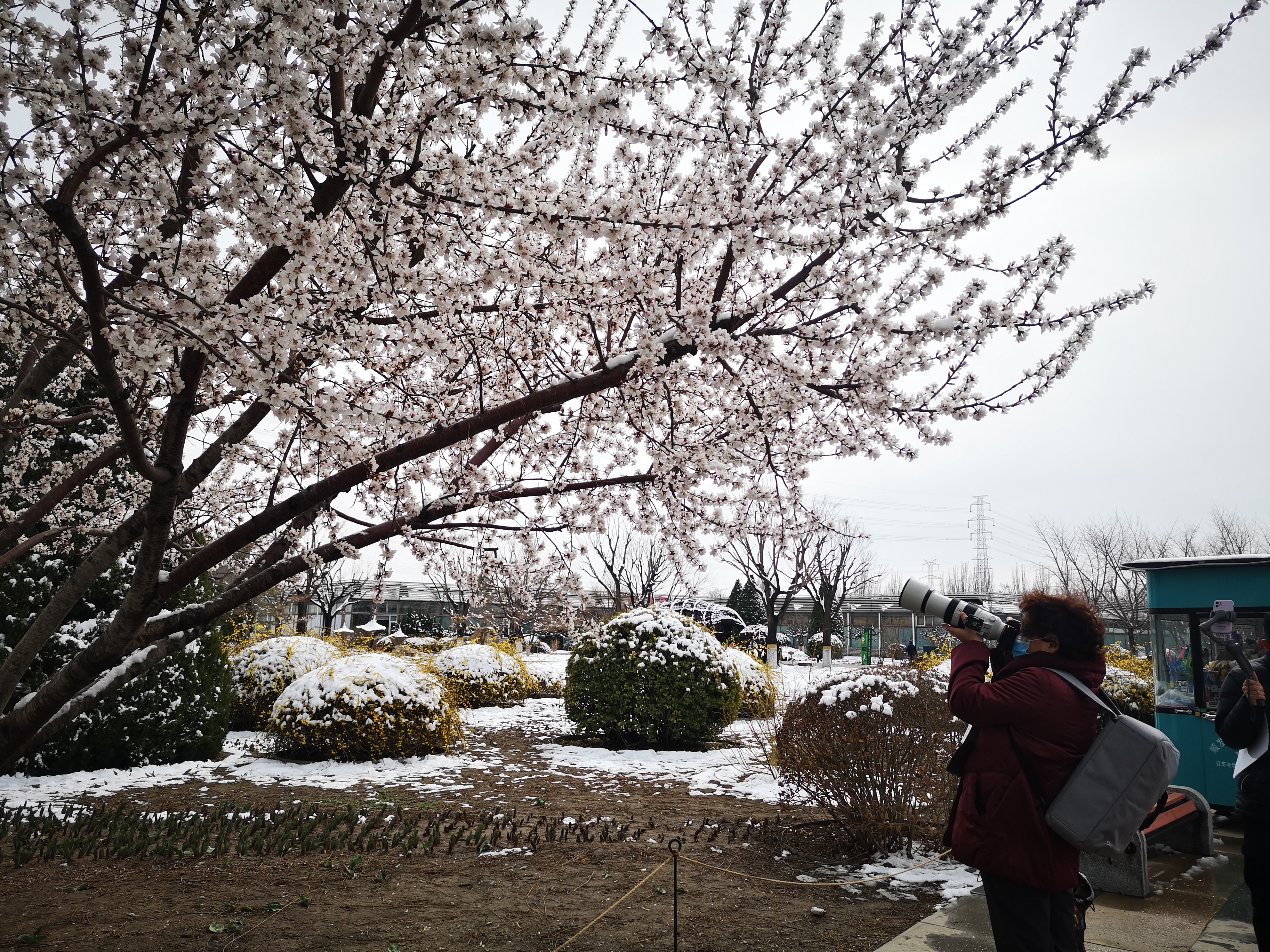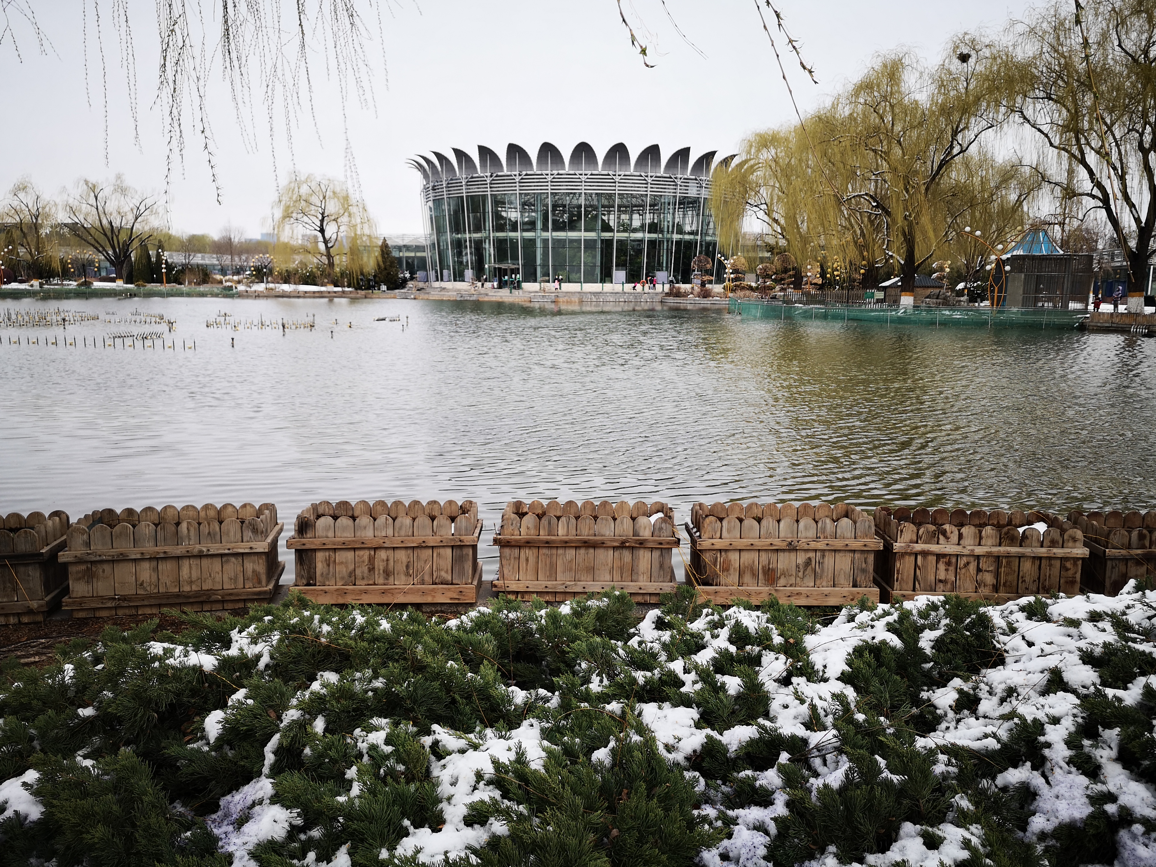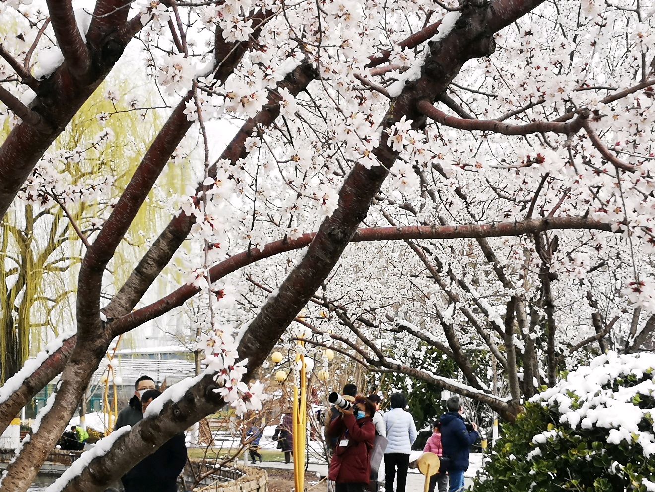 3月19日上午,记者来到北京世界花卉大观园,春雪过后,园中花草绿植更加生机勃勃。碧桃花上顶着雪花,微风拂过,落英缤纷,让人分不清哪朵是桃花哪朵是雪花;郁金香喝足了甘甜的雪水,争先恐后的伸展着腰身;垂柳绿意更浓,中心湖里的野鸭似乎也被这雪后春日美景迷醉,不停地扑闪着翅膀。一处处地景艺术作品在春雪的掩映下愈发靓丽多姿。