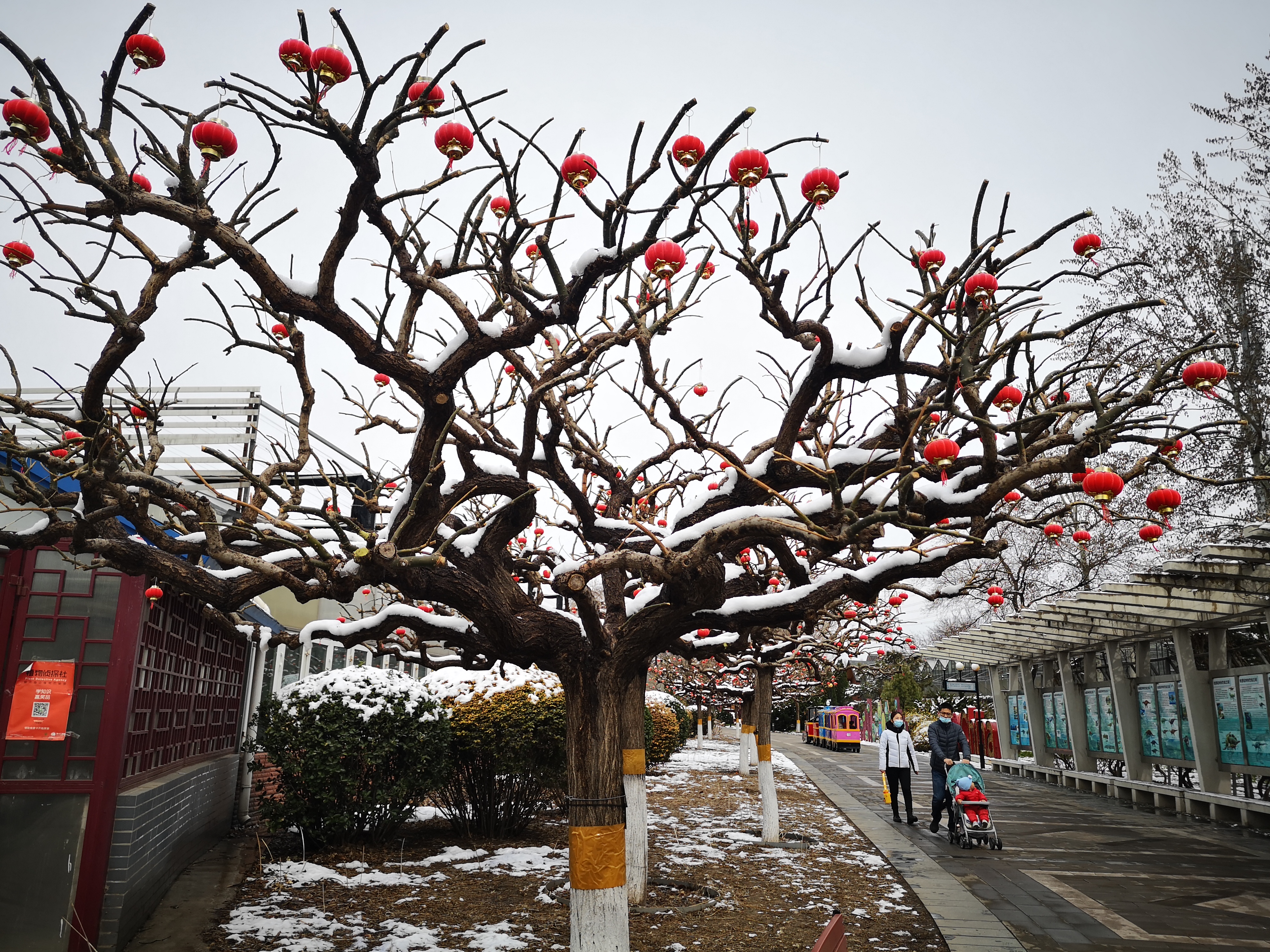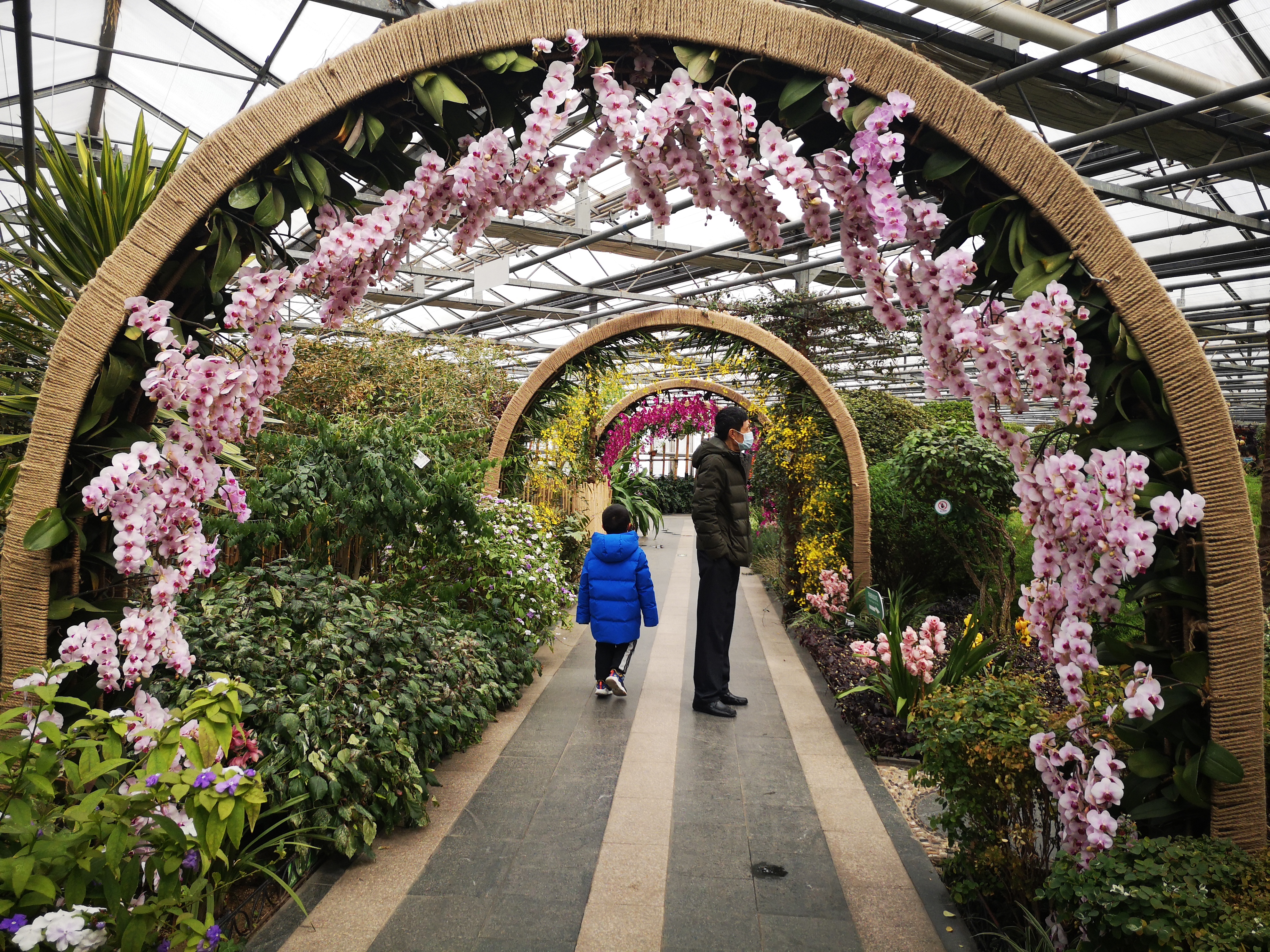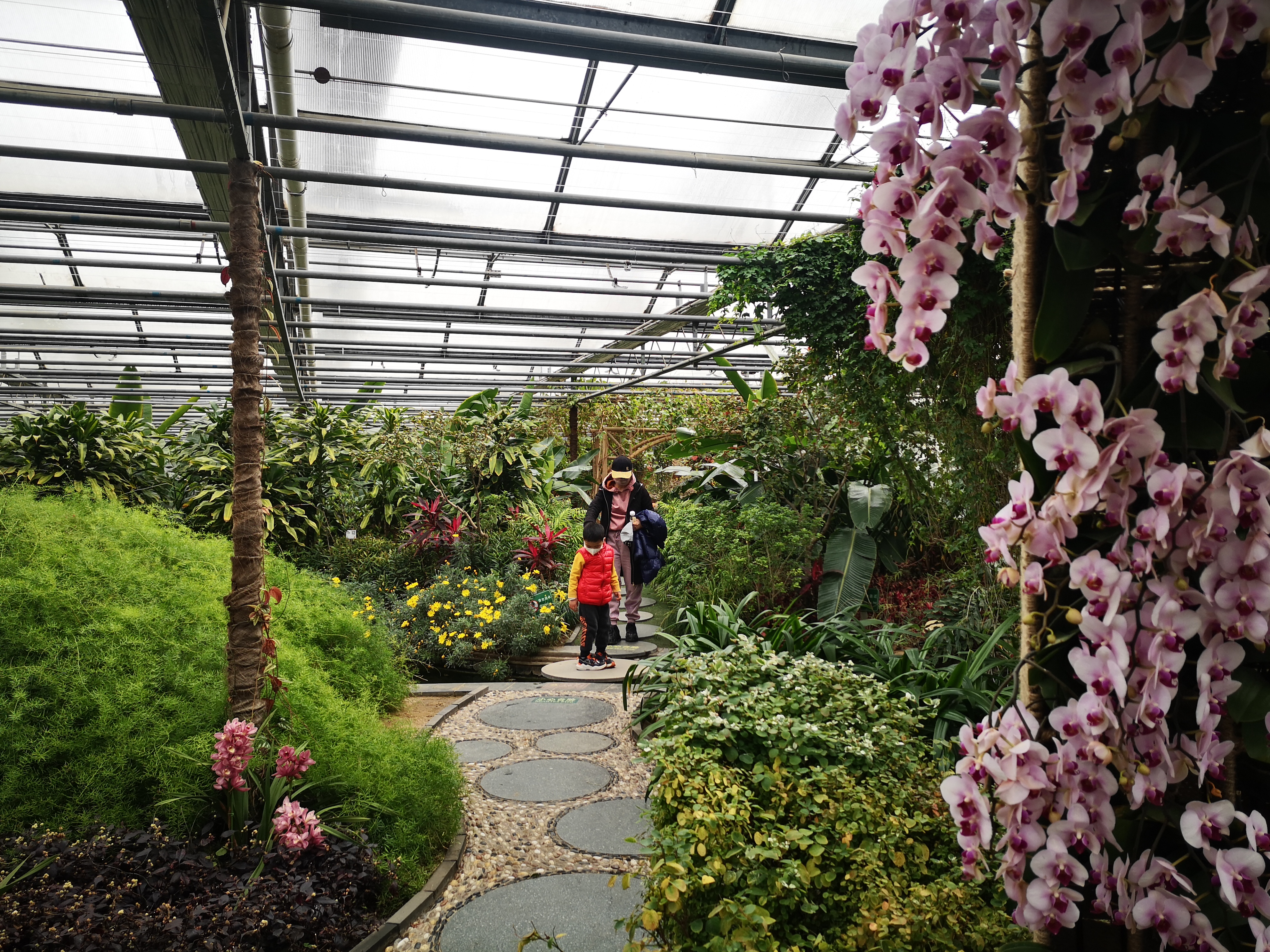 大朋友和小朋友们欣赏完雪后美景,纷纷来到植物温室,这里更是一番春意盎然的景象。