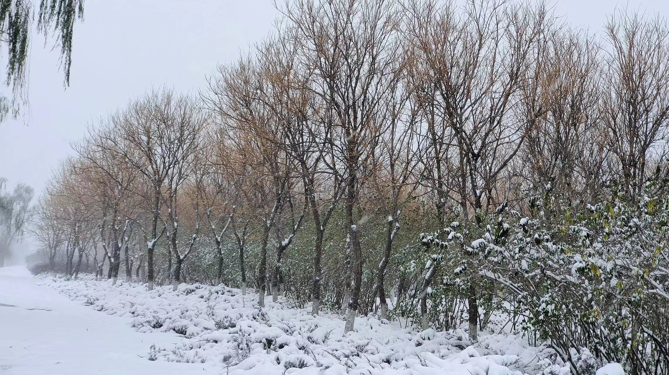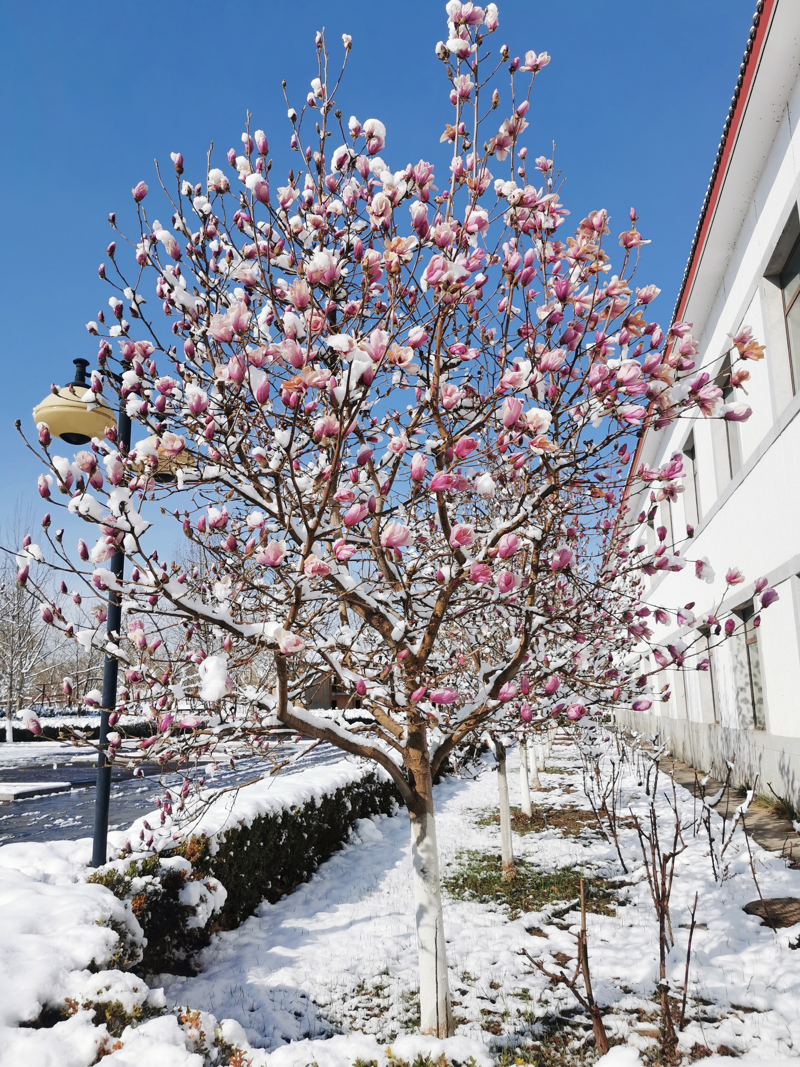 昨天,一场春雪一下子将金盏美成了一幅天然的水墨画。金盏银装素裹、积雪如画,一片片洁白的雪花随风飘舞、摇曳多姿……