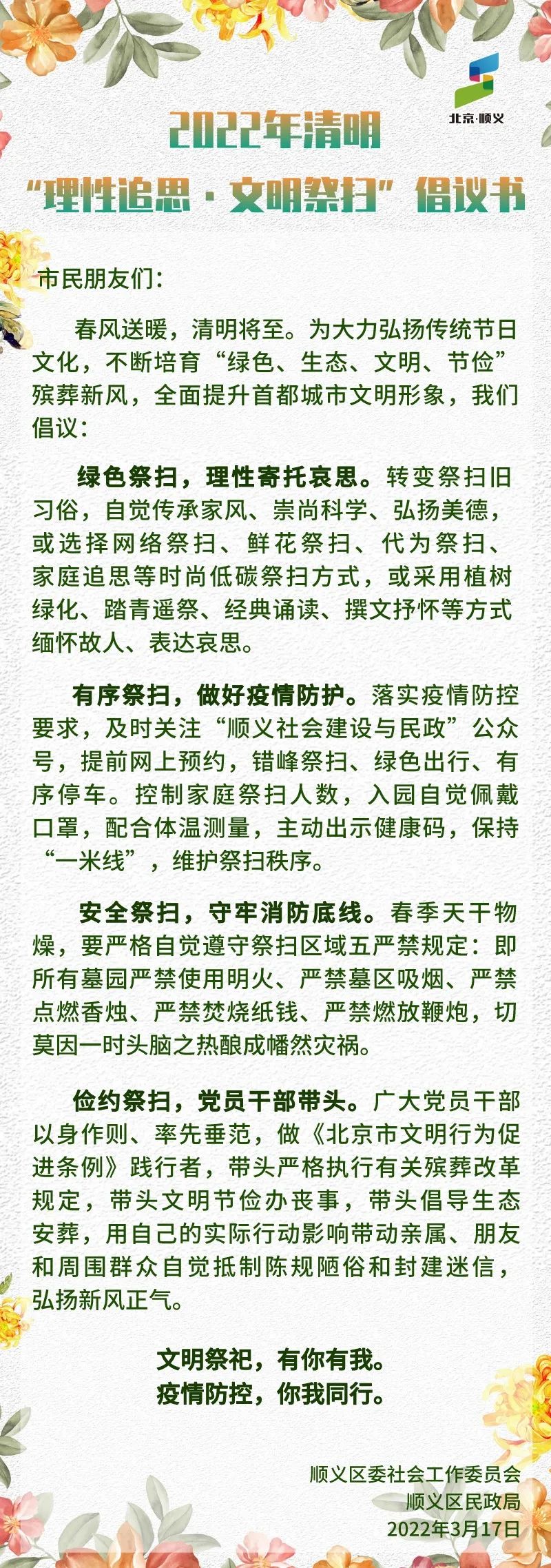 2022年清明“理性追思·文明祭扫”倡议书