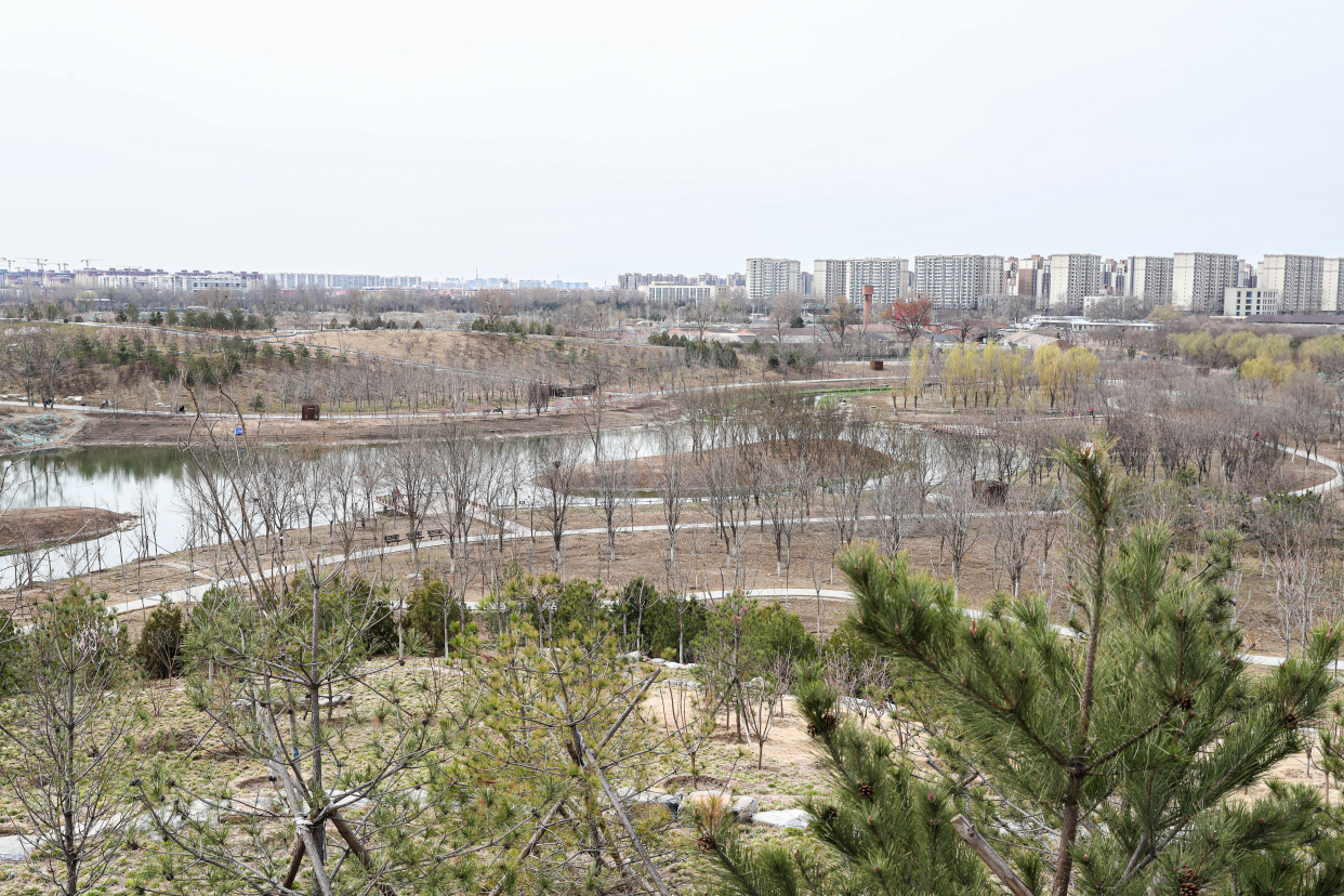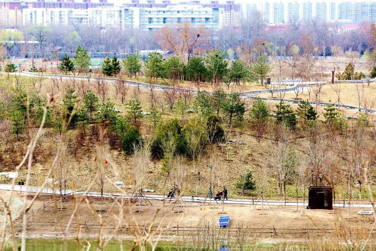3月22日上午,天朗气清,微风拂煦。记者来到正在建设中的南苑森林湿地公园。这座首都南部的生态“绿肺”正在紧张建设中。沿着山坡拾阶而上,视线豁然开朗,以四环为界,中心城区高楼林立,森林湿地绿树层林,宛如空中花园、丹青绘卷。平台环植桃花、牡丹,春深花发,国色天香。历经一道绿隔,百万亩平原造林工程正在建设,登台俯瞰,极目远眺,西山、中央电视塔、丽泽商务区、中国尊等重要地标清晰可见。山环水绕、藏风聚气,闲时漫步,颇有惬意之感。