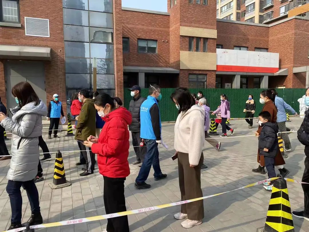 在上午进行的第四轮全员核酸检测中,40余名包楼的社工志愿者分组引导居民到二区小广场做核酸检测采样工作,协助医务人员提醒大家做好防护和登记的同时,志愿者根据登记情况,上楼逐户敲门,提醒未到场参与核酸检测的居民下楼进行核酸检测。社区特意安排两组工作人员排查小区的老、弱等特殊人群,梳理上门核酸居民名单,保证社区居民应检尽检,为全员核酸的顺利完成提供了有力支撑与保障。