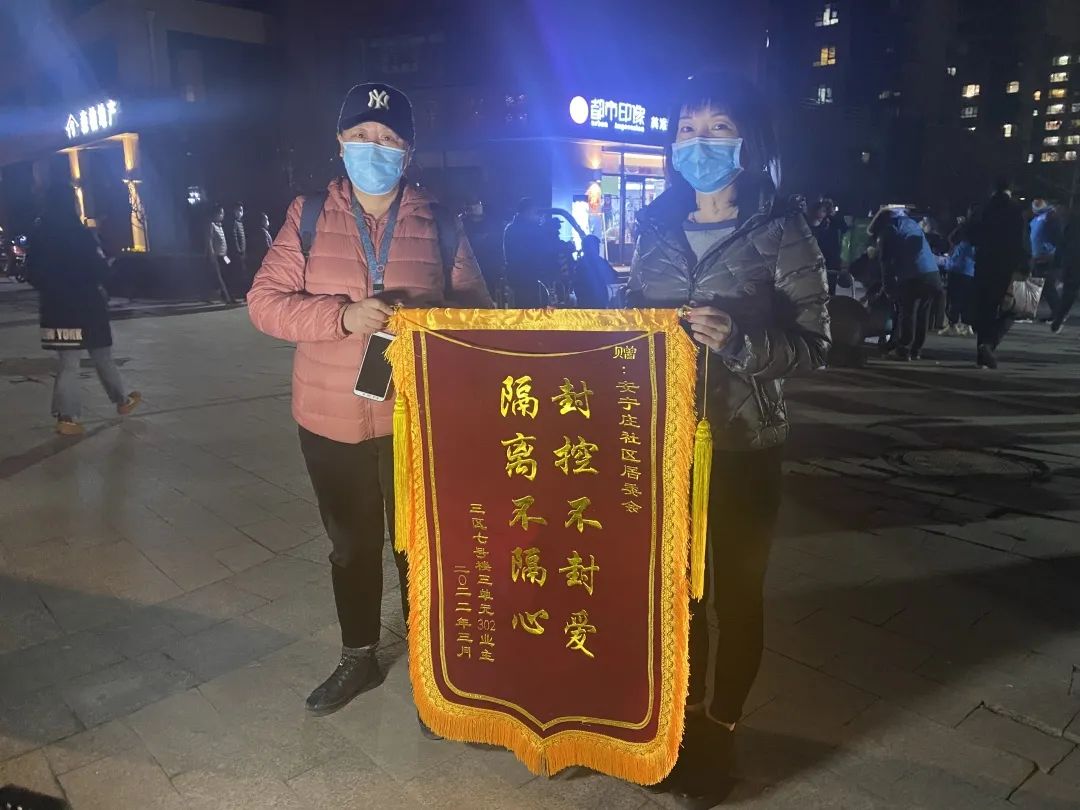 “多亏了你们的帮助,没有你们我真不知道该怎么办......谢谢你们!”在社区南门外,居民李女士深情地向社区工作人员表示感谢,同时为他们送上一面锦旗,感谢社区党组织和社区居委会在小区封闭期间对自己独居母亲的关心和照顾。