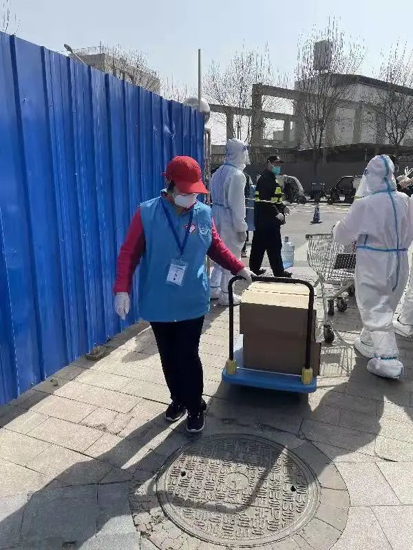 自小区封控以来,社区内的党员干部纷纷自愿报名参与到封控楼栋的物资配送工作中,新就业群体“清新暖”志愿服务队的快递、外卖小哥也在第一时间参与到疫情防控中,用实际行动筑起社区防疫的暖心阵线。