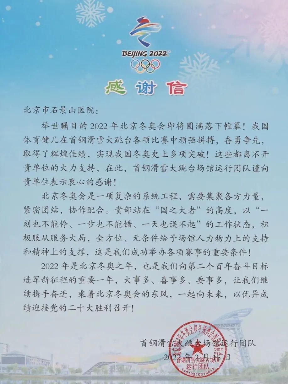 随着北京2022冬奥会及冬残奥会圆满落下帷幕,石景山医院顺利完成了医疗保障任务。