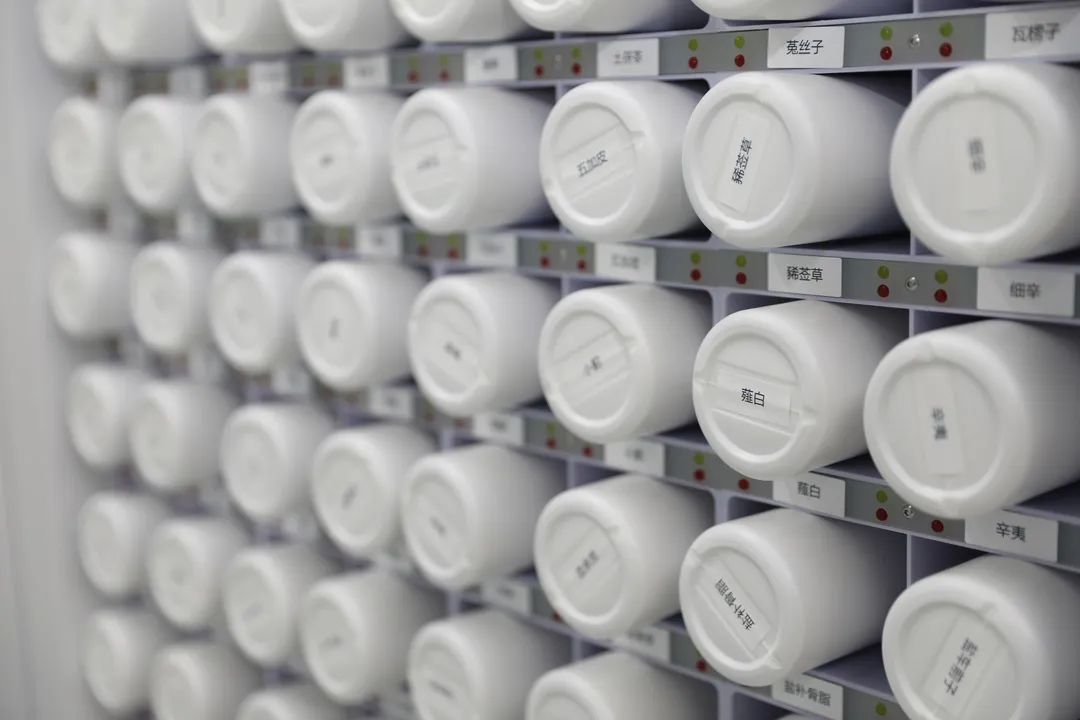 记者走进海淀医院的草药房,亲眼见证了自动开药过程。智能调配系统自动收到医生开出的电子处方,负责调剂的人员只需在药品调剂时对照药柜上相应显示的指示灯及语音提示下安装药瓶,机器就会自动称重、调配。调剂完成后,机器在全封闭的环境下自动将一副中药按比例换算,准确计量、封装成袋,全程只需要5—6分钟,相比传统手工调配饮片,最大程度上缩短了患者等候取药时间。