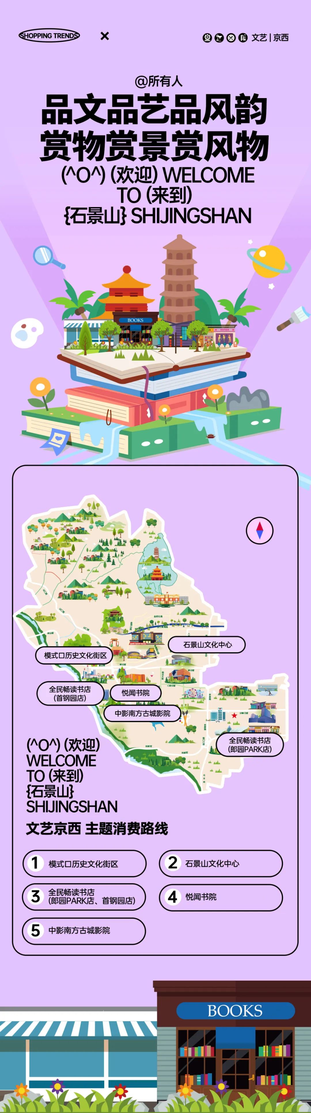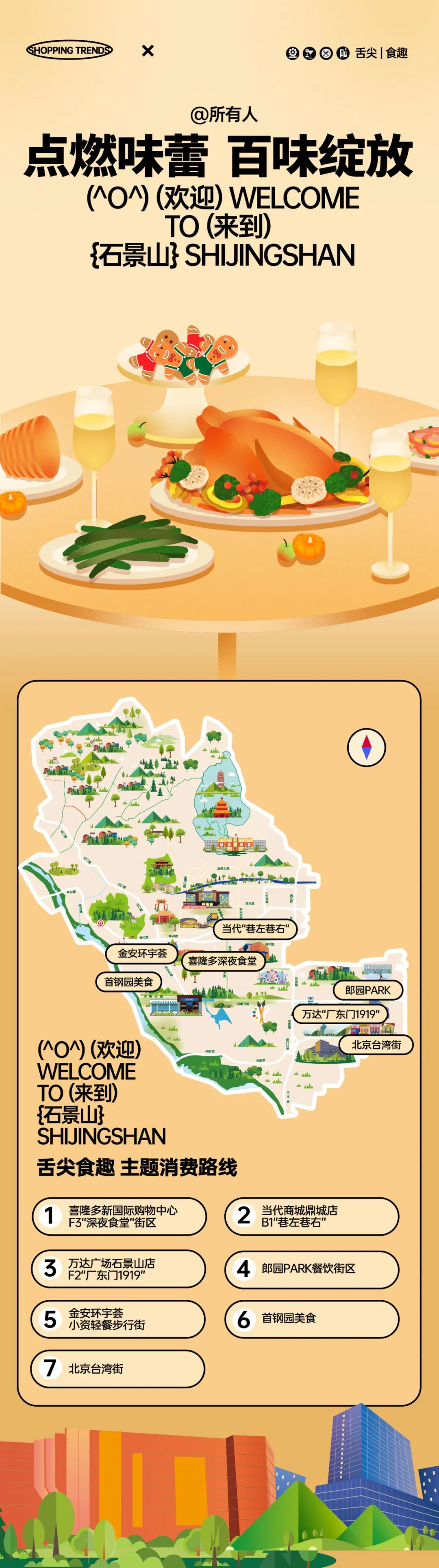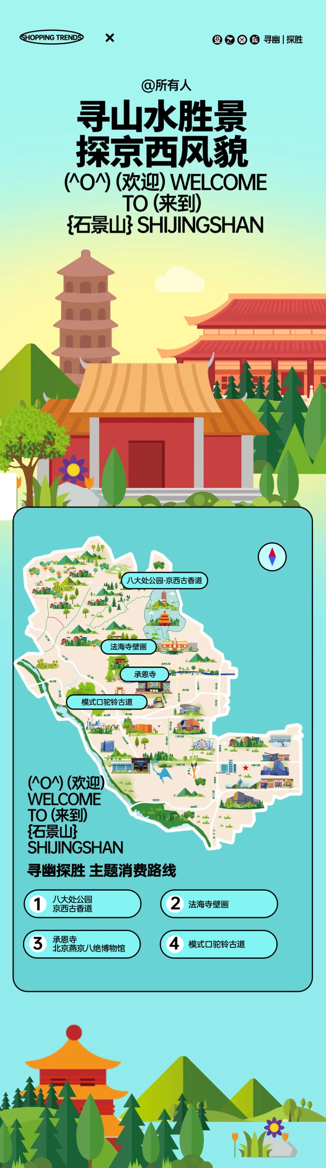 六大主题消费线路 串联了石景山区“吃住行游购娱”多种业态, 通过展示新场景、新地标, 为消费者提供了丰富多样的选择。 近期,我们还会向您 逐个介绍这六条路线中34个打卡点位的 详细情况, 内容丰富,敬请期待!