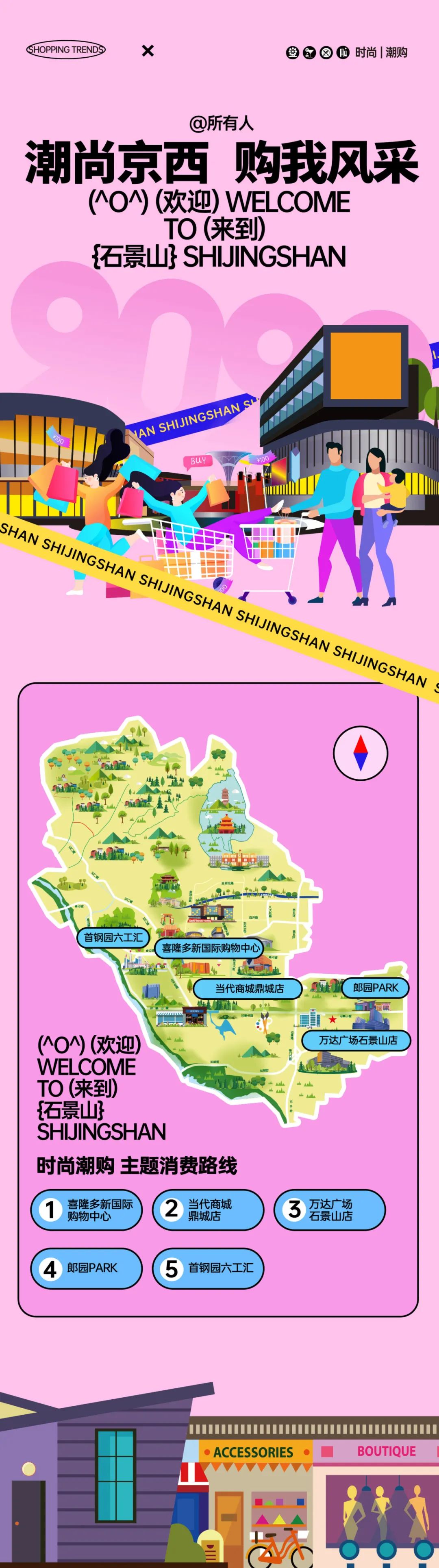 时尚潮购:潮尚京西,购我风采时尚潮购汇聚了石景山重点的消费场所,其中包括5月份即将开业的首钢园六工汇,也有去年刚刚改造升级完成的当代商城鼎城店,还有特色主题小店聚集的郎园PARK,此外还包括喜隆多新国际购物中心、万达广场石景山店等成熟商圈。