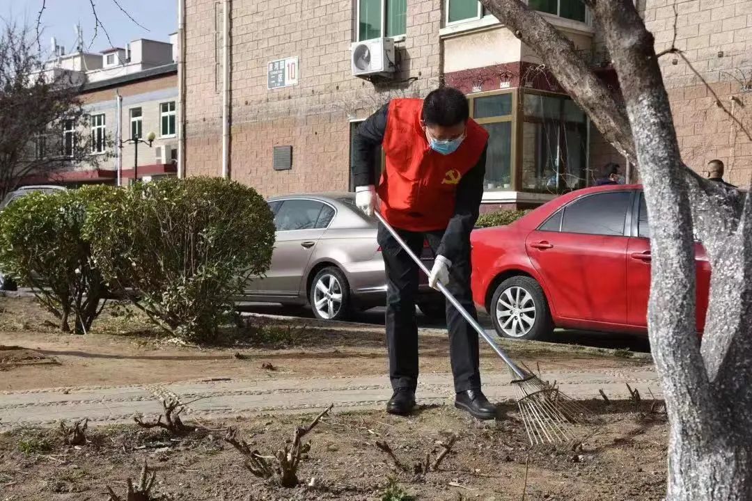 在龙山街道莲馨苑小区,郭延红和党员干部群众一起,规范佩戴口罩,身着志愿服务马甲,手持工具,清理小区绿地的枯枝碎叶、垃圾杂物等。在大家的相互配合、共同努力下,清理出小区杂物。