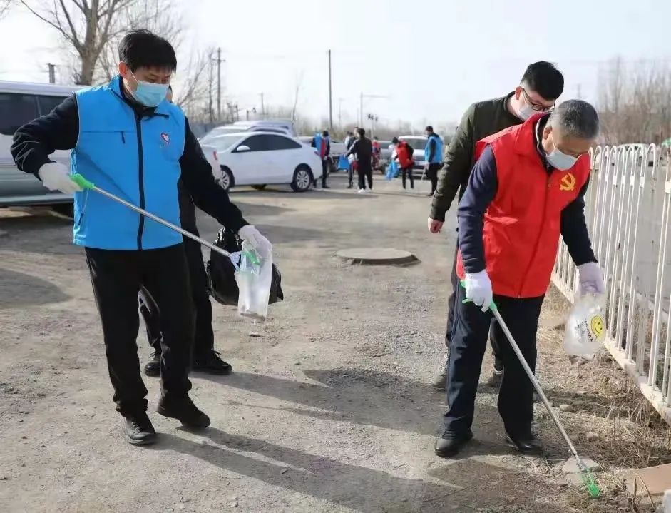 在泉河园二区,于庆丰与党员、志愿者们一同清理小区绿地,捡拾白色垃圾,清理卫生死角,并详细了解了街道各社区绿化、停车、居民自治等工作开展情况。此外,街道各社区、村也纷纷组织在职党员、团员青年、社区志愿者开展环境整治,清理堆物堆料、小广告、塑料废弃物等,发放宣传材料。