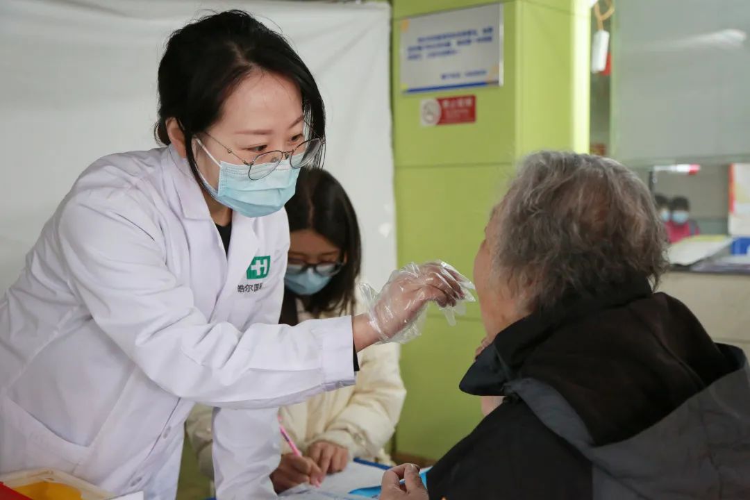 北京同仁堂股份有限公司为疫苗接种点的居民“把脉问诊”。