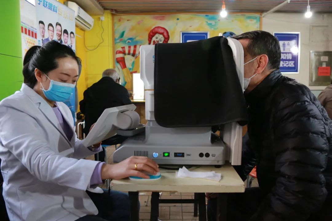 北京宁联智慧国际眼科医院为接种疫苗的老年人开展眼部检查。
