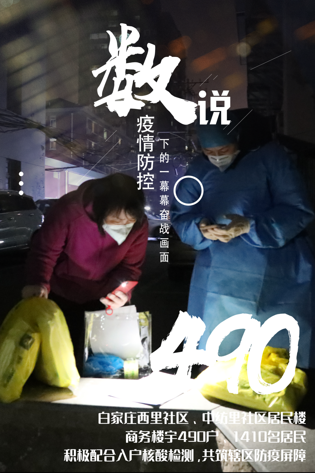 白家庄西里社区、中纺里社区居民楼、商务楼宇的490户、1410名居民积极配合入户核酸检测,共筑辖区防疫屏障,同时,按照实时管控政策,应装尽装,为407户家庭安装门磁,实现落管。疫情防控工作顺畅开展的背后,有疫情防控专班密切对接白家庄小学,将密接人员转运至隔离酒店;社区办从各个社区组织动员社工结对支援,在数据核查、核酸检测、上门核酸多线作战;综合办现场办公,医疗物资补充和保障;党群办组织街道人员前往支援、宣传部门的舆情监测;诉求处置中心的诉求分发,等等。