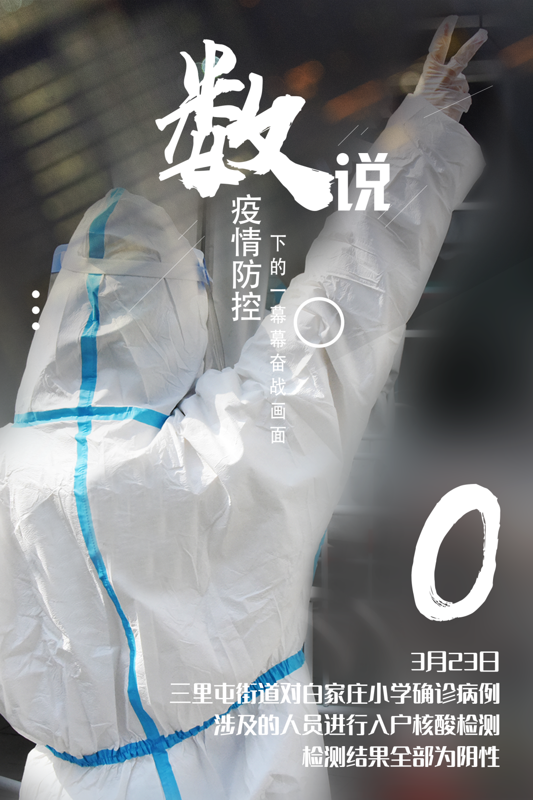 3月23日,北京新增4例本土确诊病例,其中,白家庄小学(本部北校)一名在校学生确诊为新冠病例。三里屯街道开启了与疫情赛跑的应急响应模式,相关科室部门、社区争分夺秒,快速完成涉及白家庄西里社区、中纺里社区相关人员的数据核查、核酸检测、居家管控等防控任务,阻断病毒传播链条,共检测1410人,结果均为阴性。
