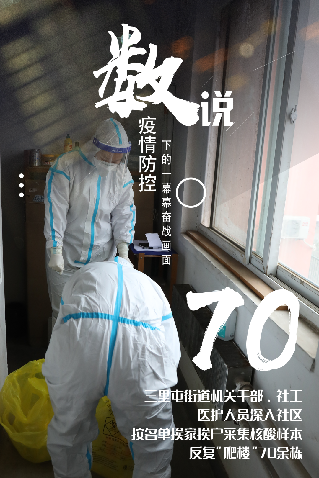 三里屯南路4号楼、白家庄路1号院、白家庄西里8号楼、三里屯南路14号楼、兴华公寓院内……三里屯街道机关干部、社工、医护人员深入一线,按名单挨家挨户采集核酸样本、安装门磁,反复“爬楼”70余栋。“居民们只管安心宅家战疫,剩下的我们会‘跑腿’上门做好服务,希望大家都能理解支持工作,希望疫情的阴霾终将在春日的暖阳和煦风中被吹散”,这是所有工作人员的共同心声。