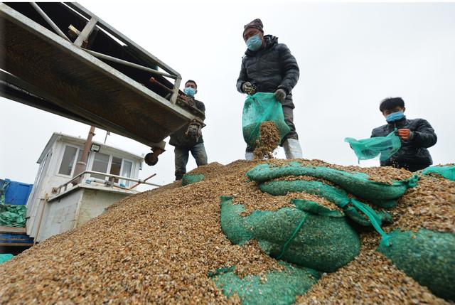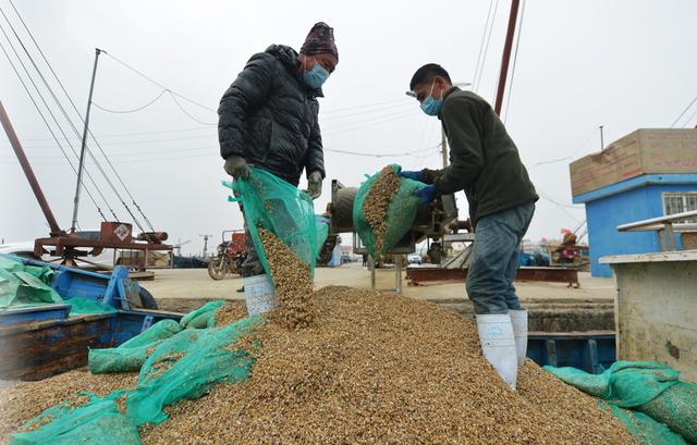 3月30日,青岛市城阳区红岛街道有序推进复工复产,渔港码头一派繁忙景象。渔民抢抓蛤蜊苗底播时机,为海上“菜篮子”稳产增收奠定基础。近年来,当地依托胶州湾滩涂养殖优势,大力发展贝类养殖,取得了良好的经济效益,带动渔民增收致富。(大众报业·大众日报客户端记者 肖芳 通讯员 王海滨 报道)