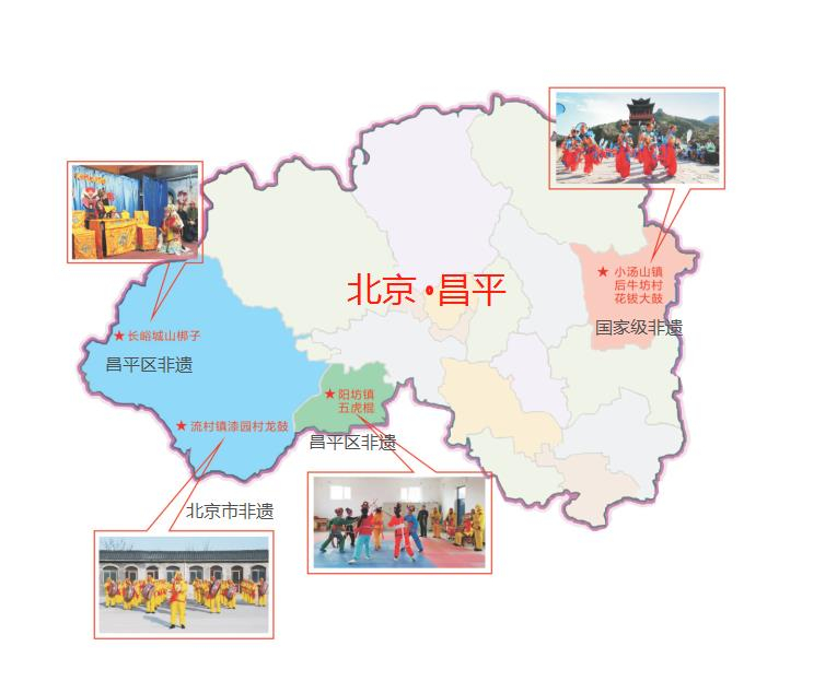 四项本土艺术非遗:国家级非遗“后牛坊花钹大鼓”、北京市非遗 “漆园村龙鼓”、昌平非遗“阳坊五虎棍” 、 “长峪城山梆子”。