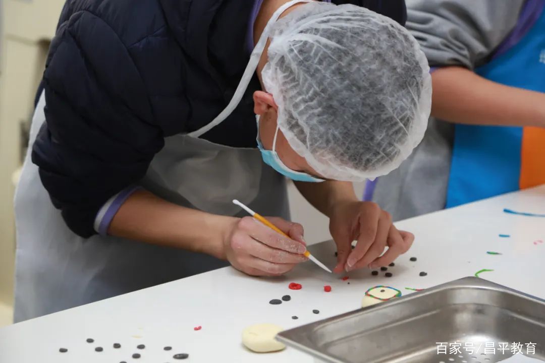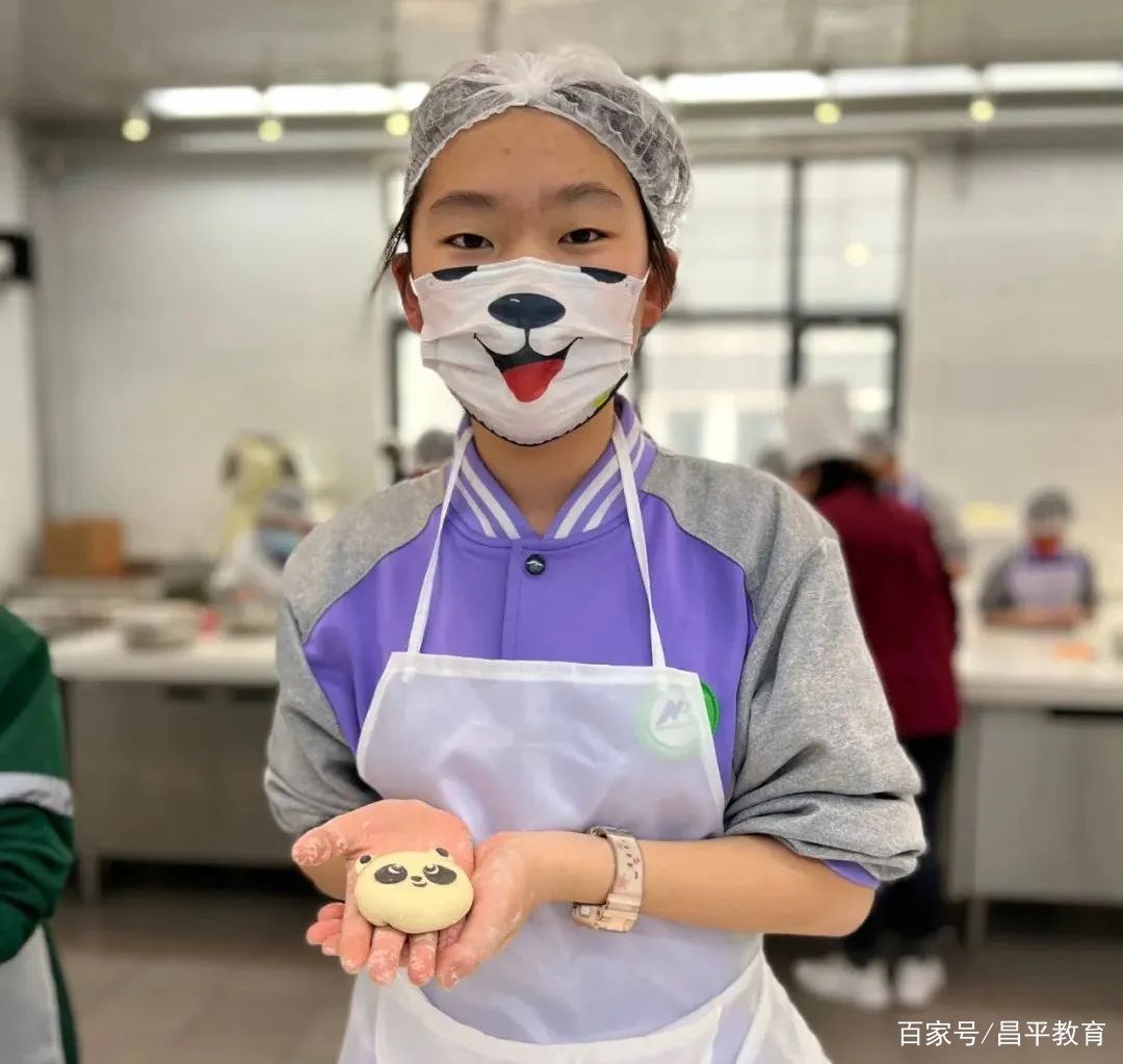 在冰墩墩卡通馒头的制作课堂上,同学们全流程学习了面点制作技巧,体会到了劳动成果的来之不易,更加懂得要珍惜粮食。