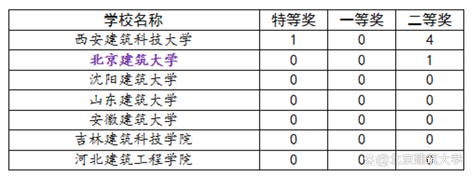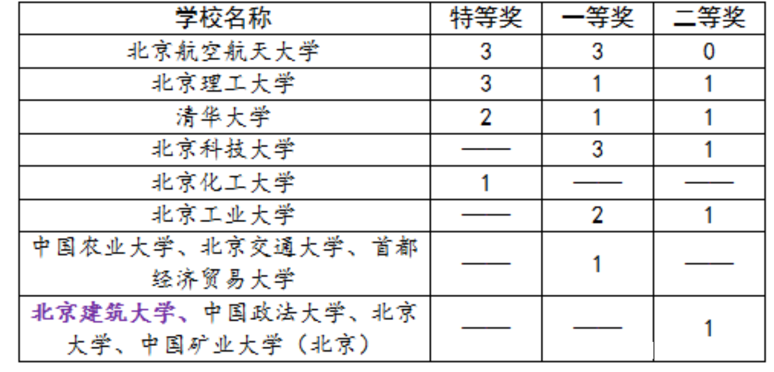 表1:北京地区高校获得国赛二等奖及以上奖项数量汇总