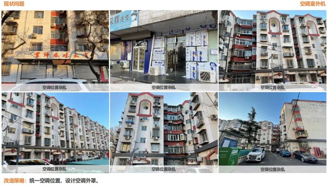 对建筑立面,将进行拆除违建;新做外墙保温、外立面粉刷提升;局部劈开砖装饰;更换雨落水管、冷凝水管;规范空调位置及空调罩;更换节能窗;新做屋面保温及防水等改造项目。