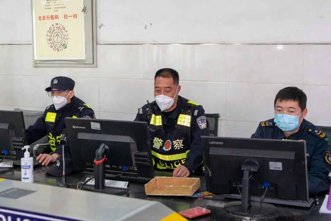 在北京市公安局延庆分局康庄公安检查站,工作人员主要负责对小型客车进行排查。通过读取身份证,车辆司机与乘客的相关信息被实时传送到检查站屋内的电脑上,监测到有疫情中高风险地区常住人口、疫情中高风险地区所在县进返京人员和离陆边境口岸所在县进返京人员等类型人员时,则立刻发出预警。以上几类人员若需通过检查站,除了进行一系列常规防疫检查外,还须进行安检、登记详细信息等流程,全力织密管控安全网,确保“不漏一人”。除此之外,工作人员定时对安检通道、登记台、桌椅进行消杀,严格落实常态化疫情防控措施,保障站内环境安全。