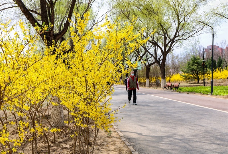 春光明媚,正是游春赏景的好时节。走进昌平新城滨河森林公园,园内草木青青,柳枝新抽出绿叶,迎春花、丁香花、玉兰花等花儿竞相绽放,与碧绿的湖水相映,无边无际的风光焕然一新,春的气息吸引了不少市民前来观赏。拍摄:荷叶飘香