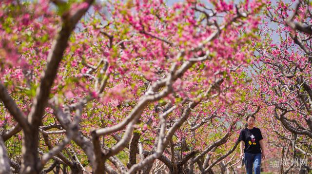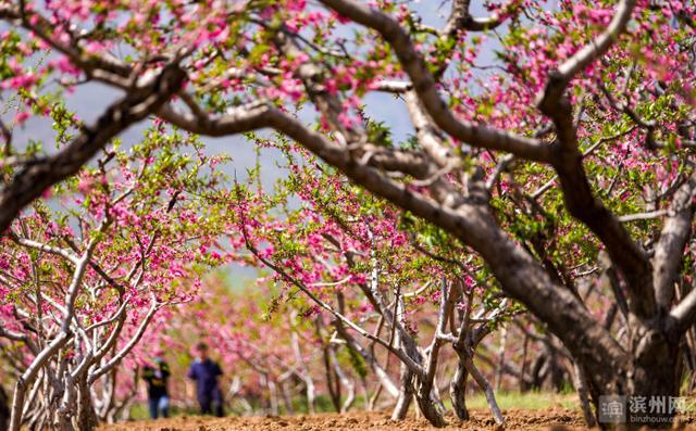 4月11日,邹平市西董街道南部山区西庵村的观光园内,游客游玩赏花。