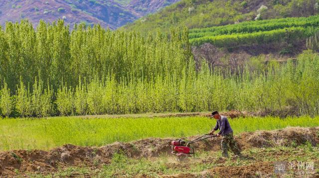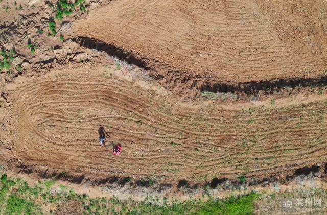 4月11日,邹平市西董街道南部山区西庵村山地特色耕作园内,村民在翻地劳作。
