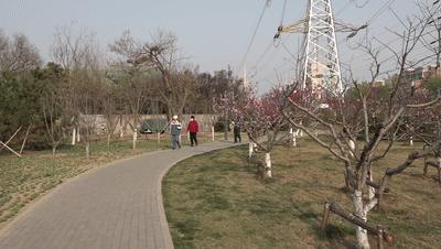 走在海淀区永建公园的小径上,感受春天芬芳气息的同时,还可以观赏两旁树上的花朵,或粉或洁白。盛开的花朵像粉扑扑的小脸微笑着,半开的花苞含羞地挂在枝头,一阵微风吹过,树上的花瓣随风落下,与地上的小草相映成趣,别有一番诗意。