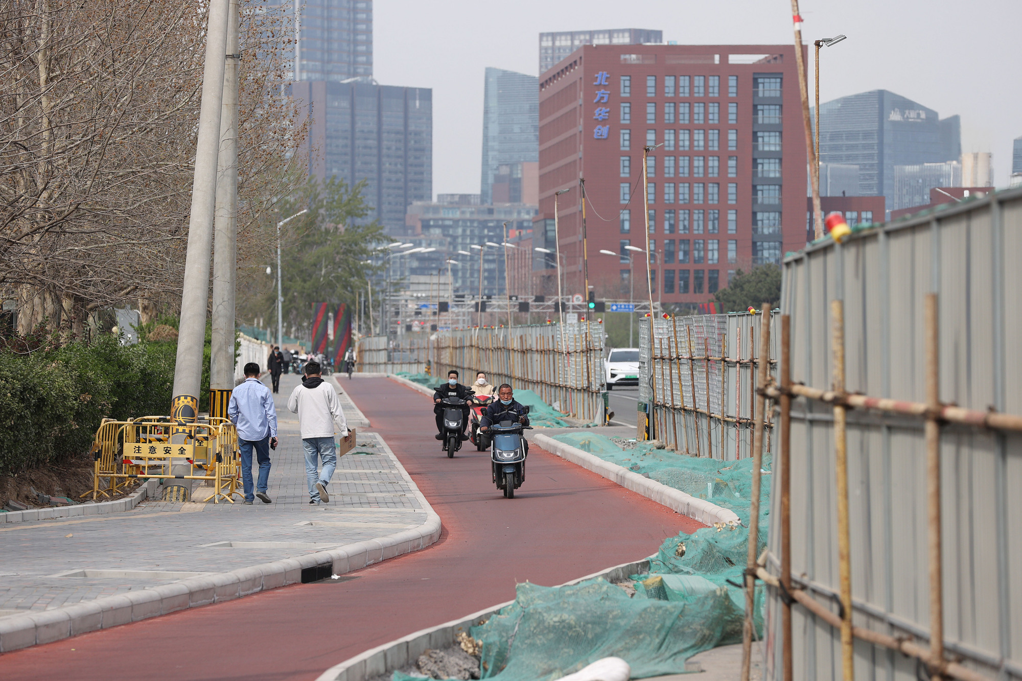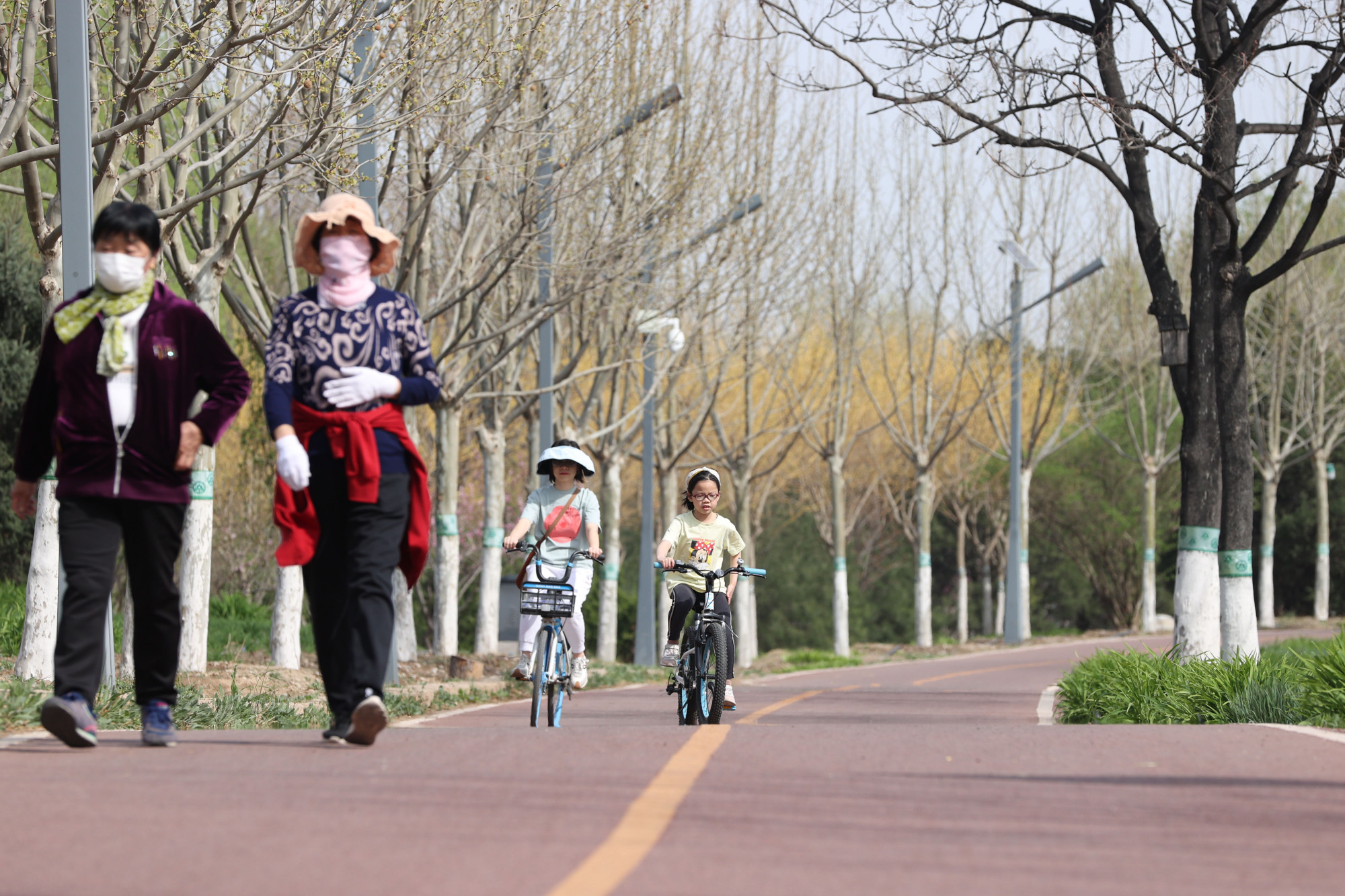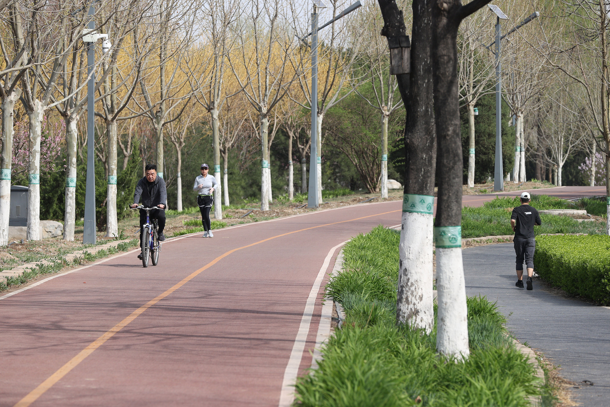 凉水河滨河公园绿道,市民们在这里慢跑、散步、骑行。