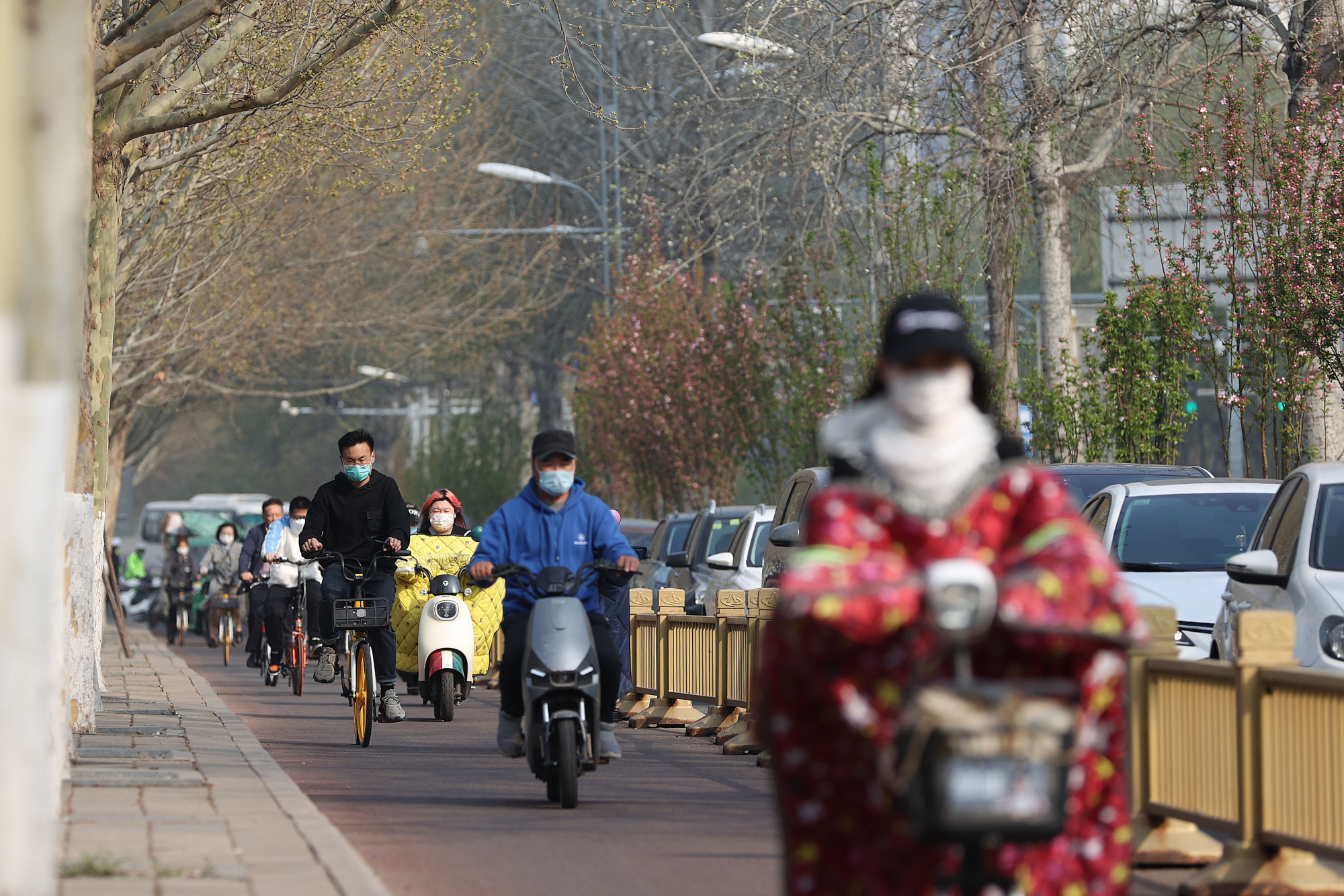 早高峰的荣华路绿道,满是绿色出行的人们。