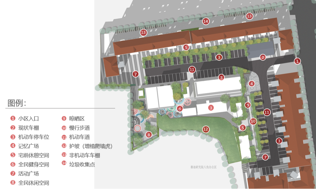 石景山区人民政府老山街道办事处为该小区综合整治工作的实施主体,多次组织物业单位、社区居委会、楼门组长、物管会、责任规划师、政府其他主管部门等召开意见征求会,目前设计方案基本稳定,正在准备报请财政评审。后期,该社区内闲置空间由产权单位征求居民意后,进一步丰富居民活动空间,完善服务设施。