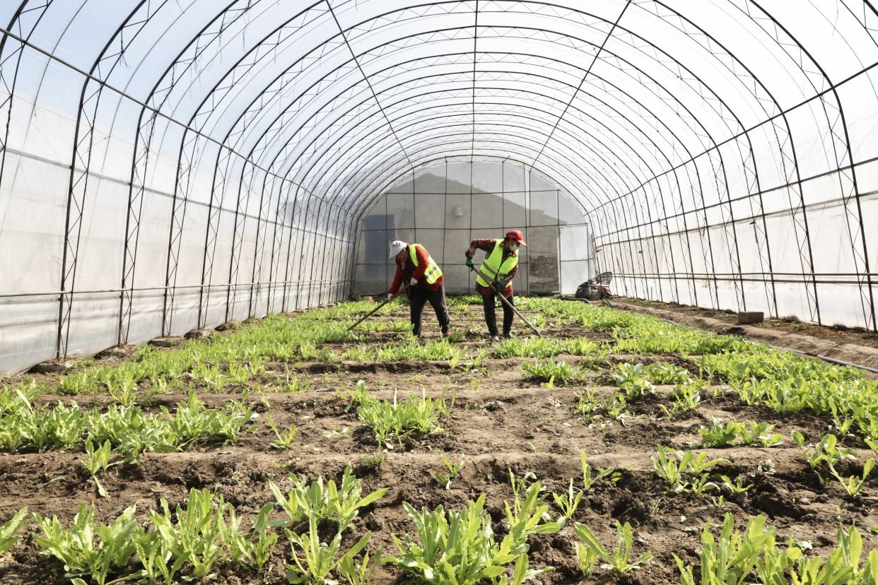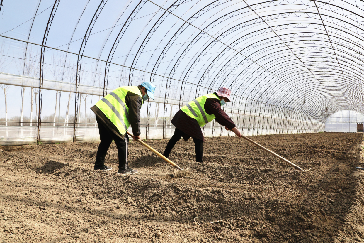 耕地上、大棚里,播种和蔬菜育苗工作紧锣密鼓开展,村民们或操作拖拉机,或挥锄头等工具,在田间地头犁田、播种,春耕生产如火如荼地进行。