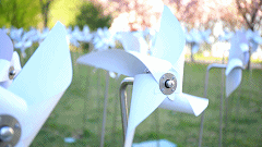 孩子们在落樱中嬉戏玩耍