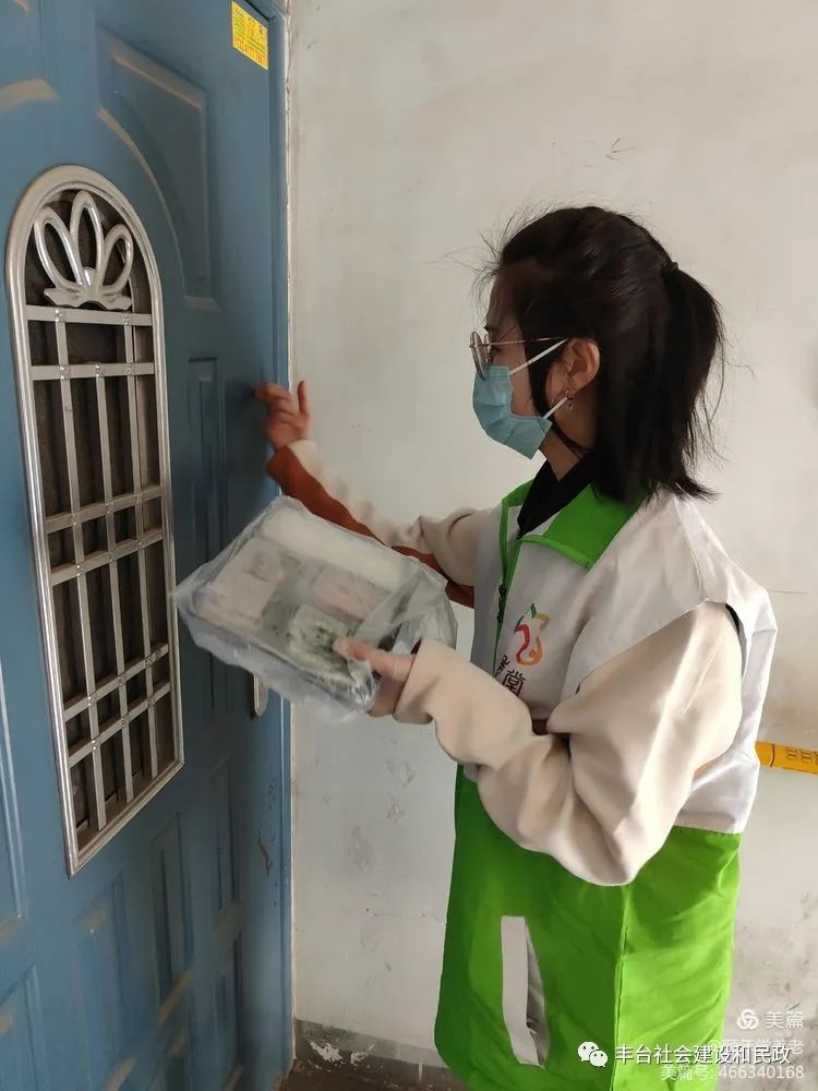 在严格做好疫情防控的同时,为保障家床服务工作顺利开展,丰台区民政局制定了《丰台区养老家庭照护床位无接触式服务监管办法》,内容包括:养老机构封闭期间,如需开展“无接触”服务,需指定机构外围人员,在取餐、送餐服务与机构内及被服务对象全程“无接触”。