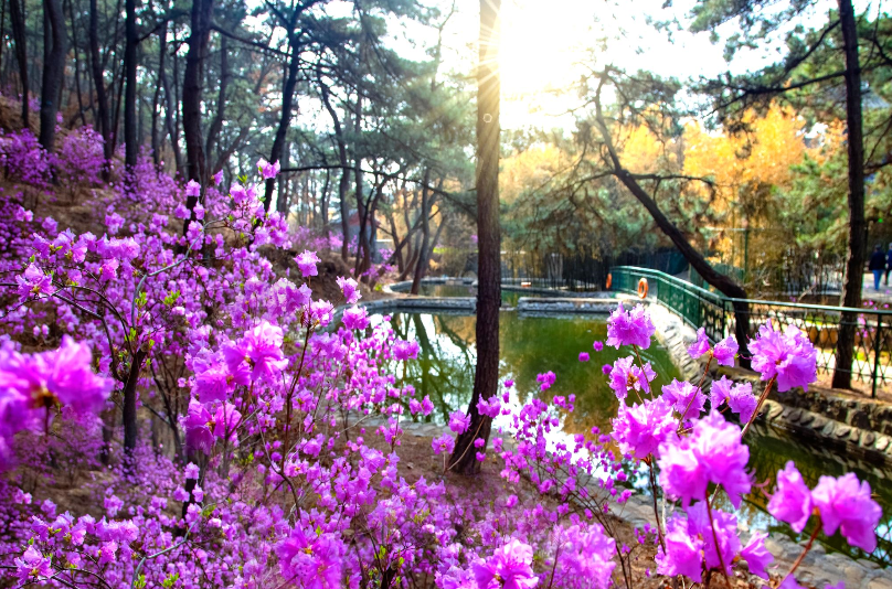 站在山间眺望,远处惊涛拍岸,近处漫山粉黛。它们在春风中妩媚,装点着这个沿海城市。