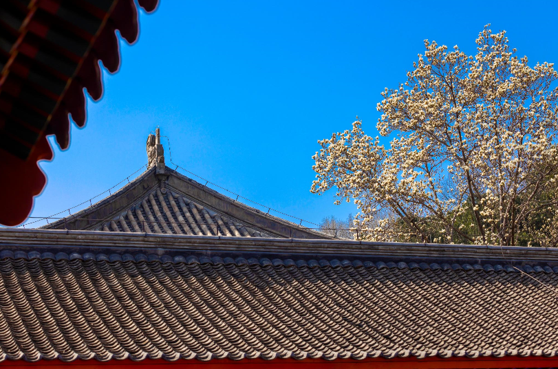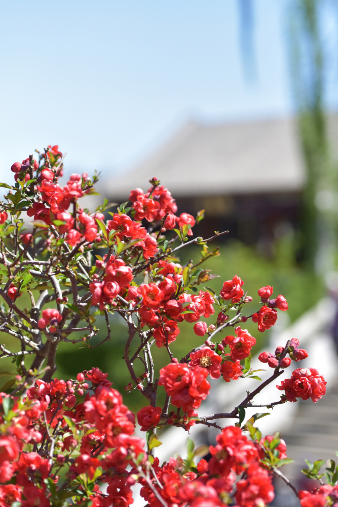 春日古刹,竹海幽深,松涛阵阵,古老的寺院在绿意与斑斓中尽显勃勃生机。寺院山林间,杜鹃、山桃、山杏等陆续开放,与苍松翠柏、黛瓦红墙相映成画。