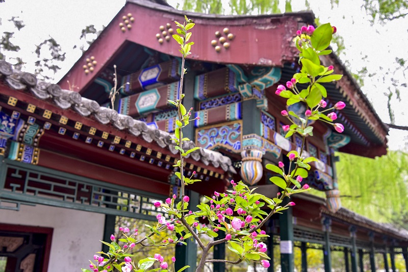 时下的玉渊潭公园,晚樱、海棠等春花绽放枝头,为这个花季续写浪漫,传递春日里未完待续的美好景致。