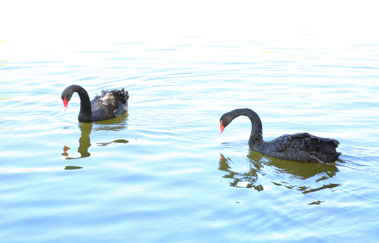 园中的黑天鹅也惬意的游弋在水面,沐浴着春日暖阳。