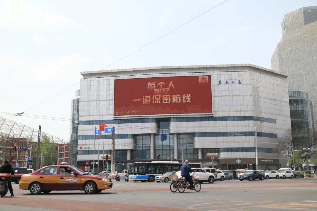 并通过京信大厦、蓝岛大厦及通盈中心户外大屏滚动播放电子版国家安全宣传语。