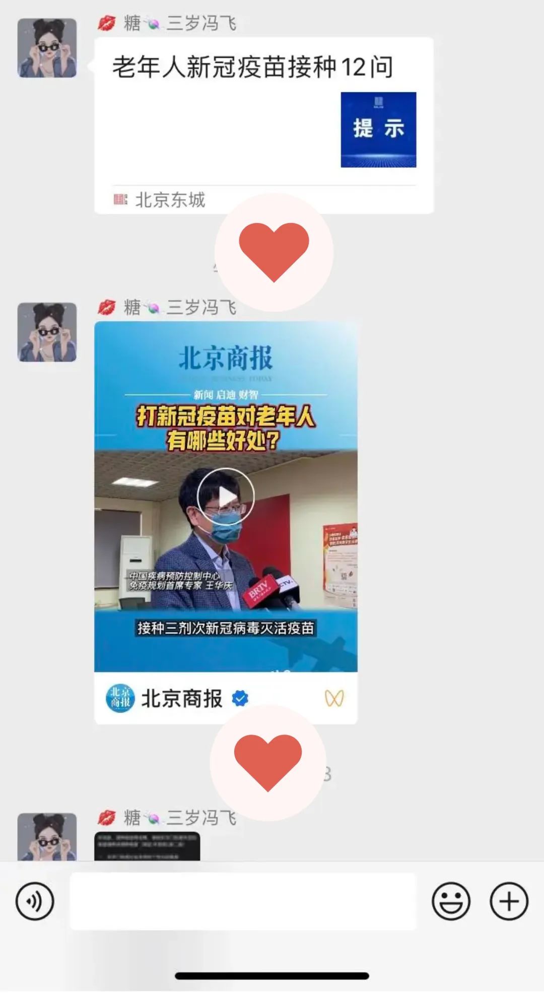 线上分享,答疑到位。灯市口社区、东厂社区等在内部微信群及时发布疫苗接种宣传文章,将疫苗接种好处广泛告知居民,鼓励动员的同时积极答疑解惑,帮助居民了解社区疫苗接种政策。