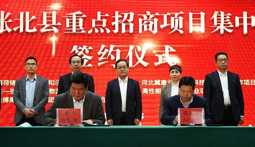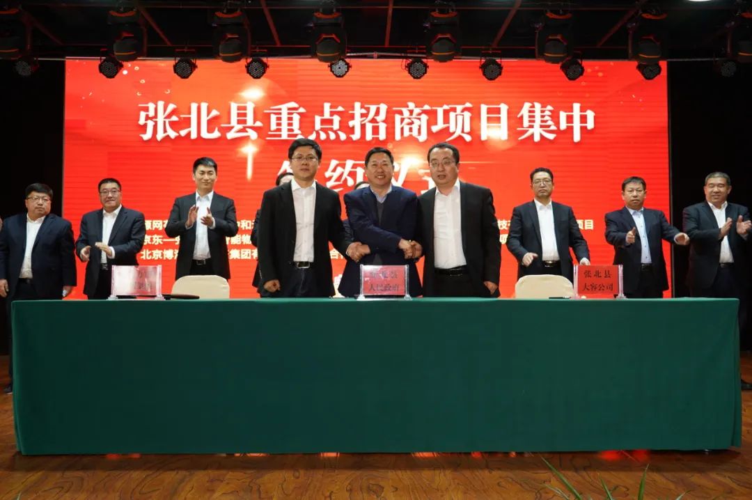 签约仪式上,张北分别与中能建中电工程新能源投资开发中心签署了源网荷储一体化碳中和示范合作项目,与冀康发展有限公司签署了河北冀康元亨生物科技有限公司项目,与京东物流签署了京东—张北数字智能物流园项目,与复材云集(北京)信息科技有限公司签署了高性能复合材料产业项目,与北京博海方舟投资集团有限公司签署了光伏合作项目。