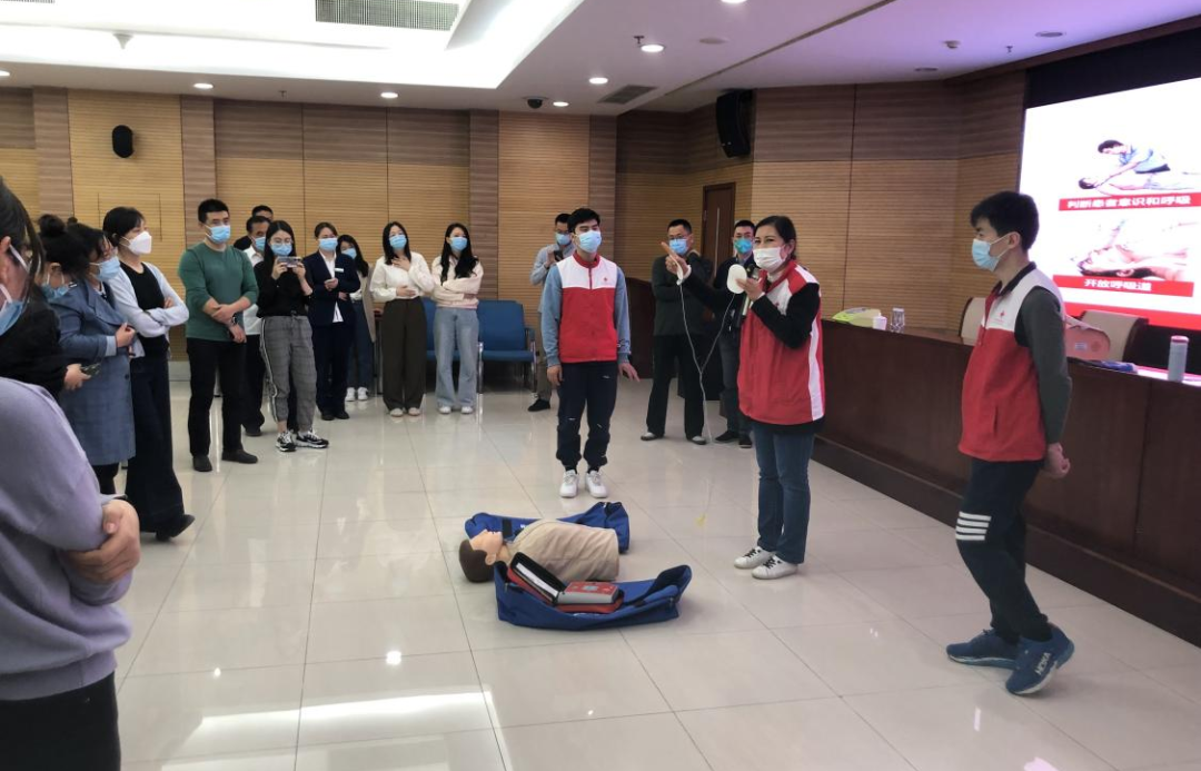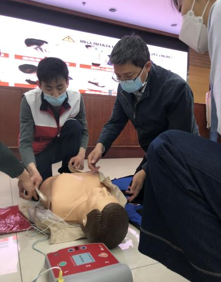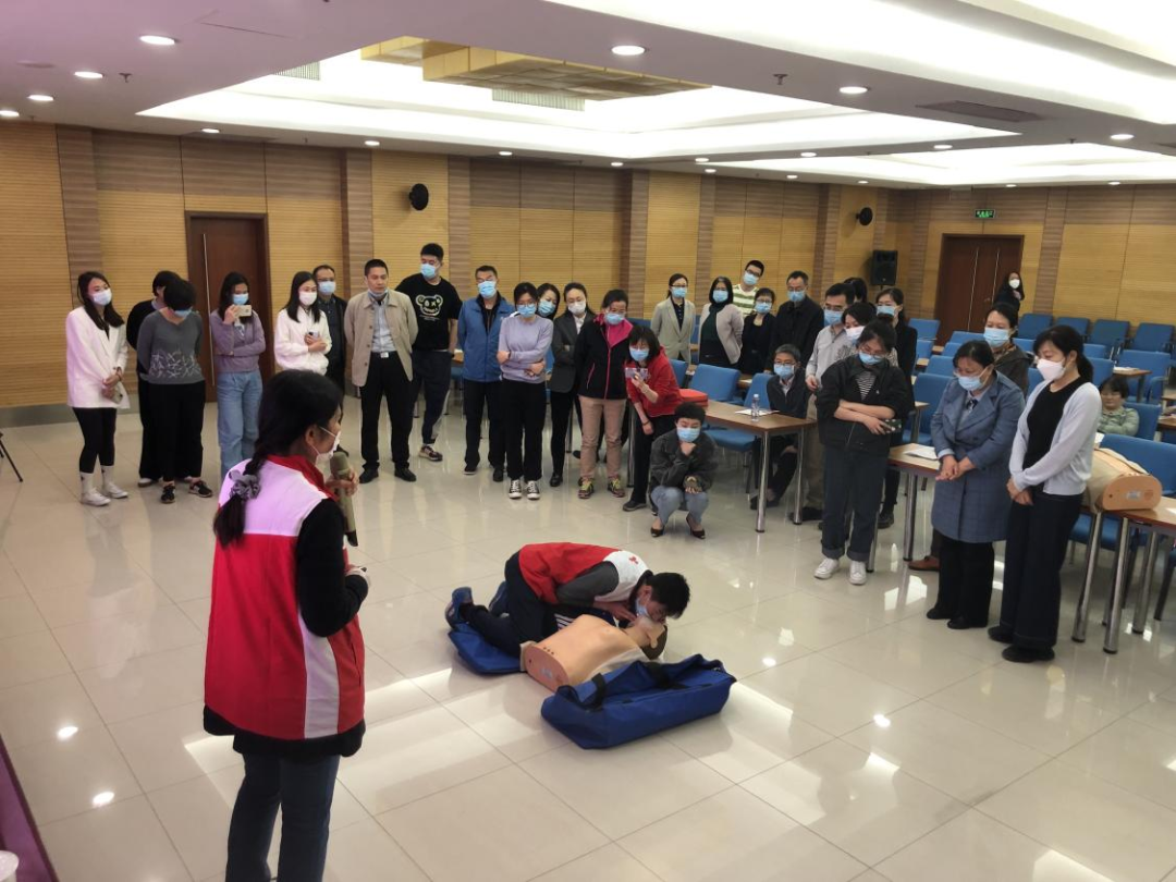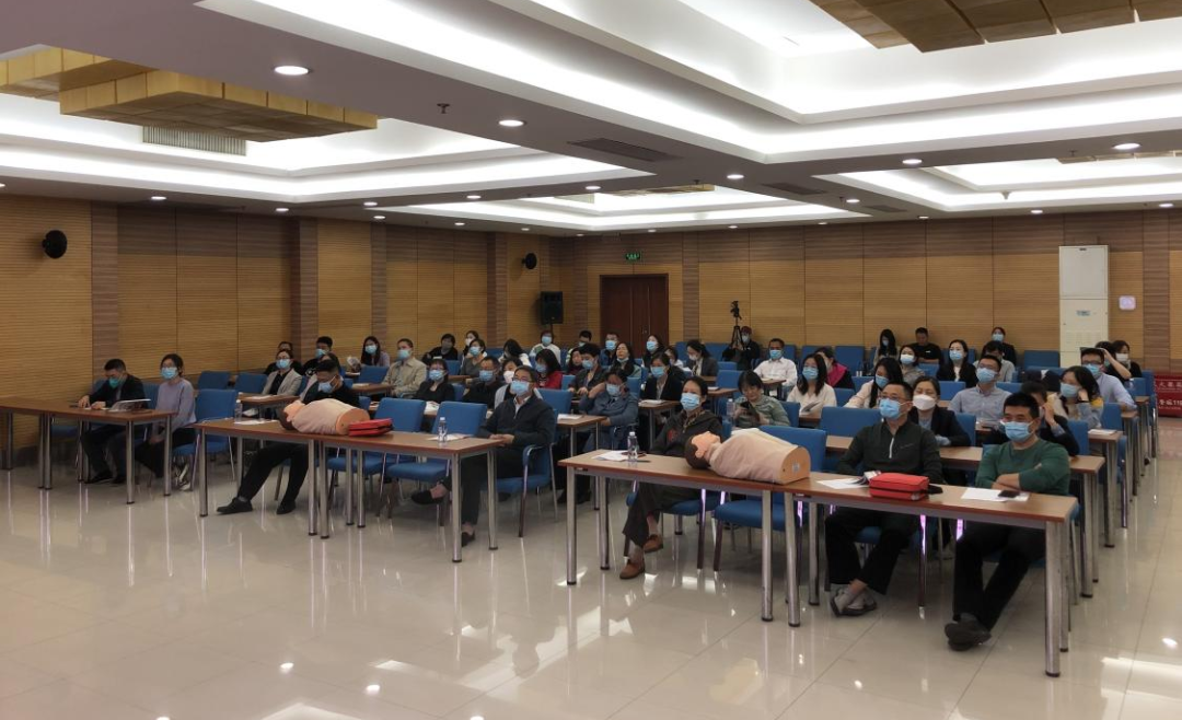 在培训课程上,老师针对机关干部的工作特点,通过大量图文视频结合的方式,耐心细致地讲解了现场急救原则、急救程序、心肺复苏操作流程和要点等理论知识。