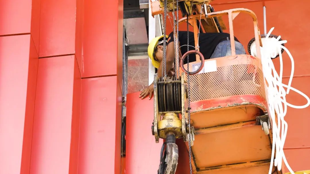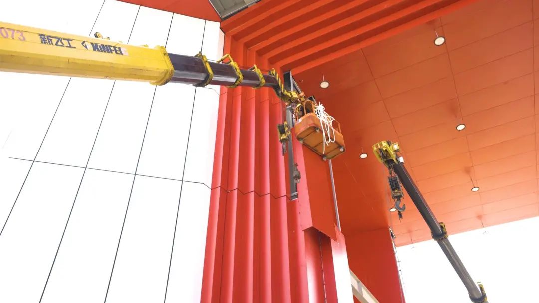 综保区设置四个海关卡口,其中三号主卡口是综保区最大的一个卡口。它采用三千多块金属板拼装而成,需要人工顶着炎炎的烈日在15米高空,去调整金属板的位置和板与板之间的缝隙大小不差分毫。