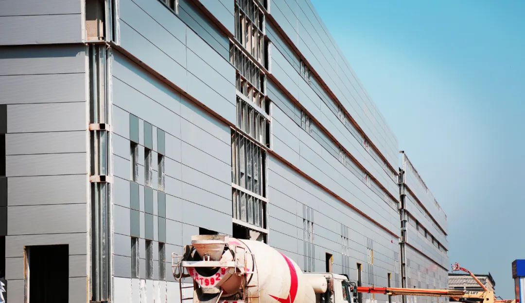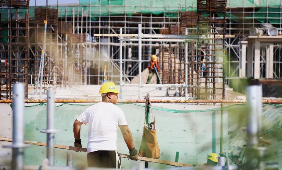 连续24小时作业,综保区的施工现场,机械轰鸣,繁忙景象。