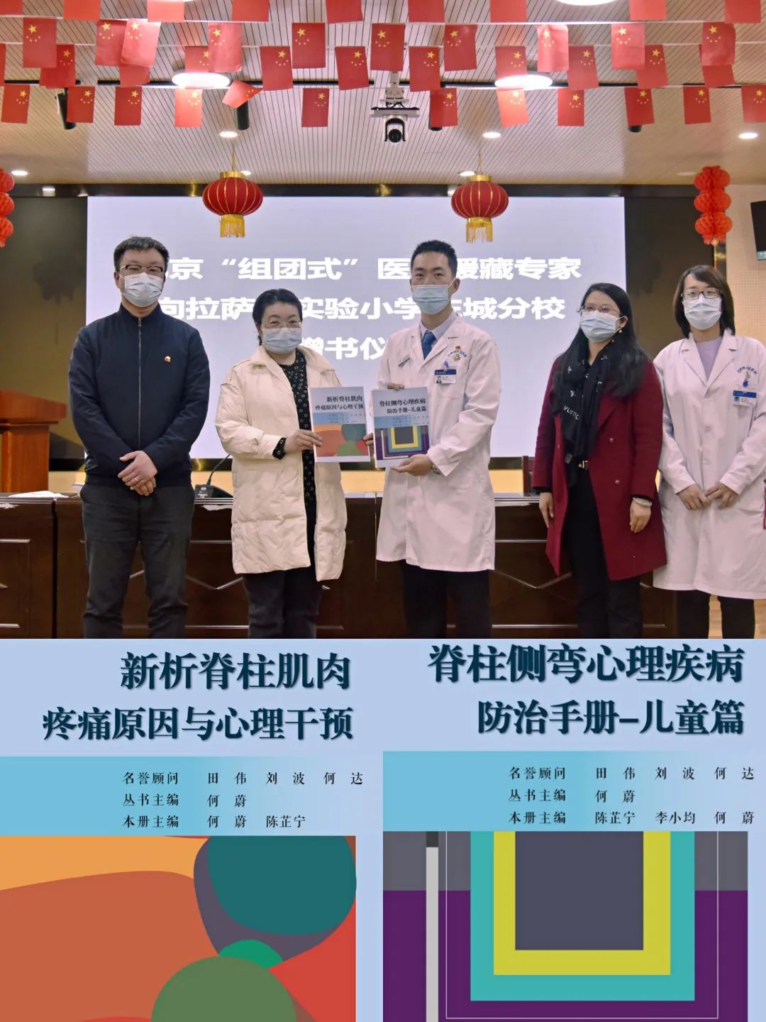 最后,北京援藏医疗团队向拉萨市实验小学城东分校捐赠了《新析脊柱肌肉疼痛原因及心理干预》及《脊柱侧弯心理疾病预防手册-儿童篇》图书。
