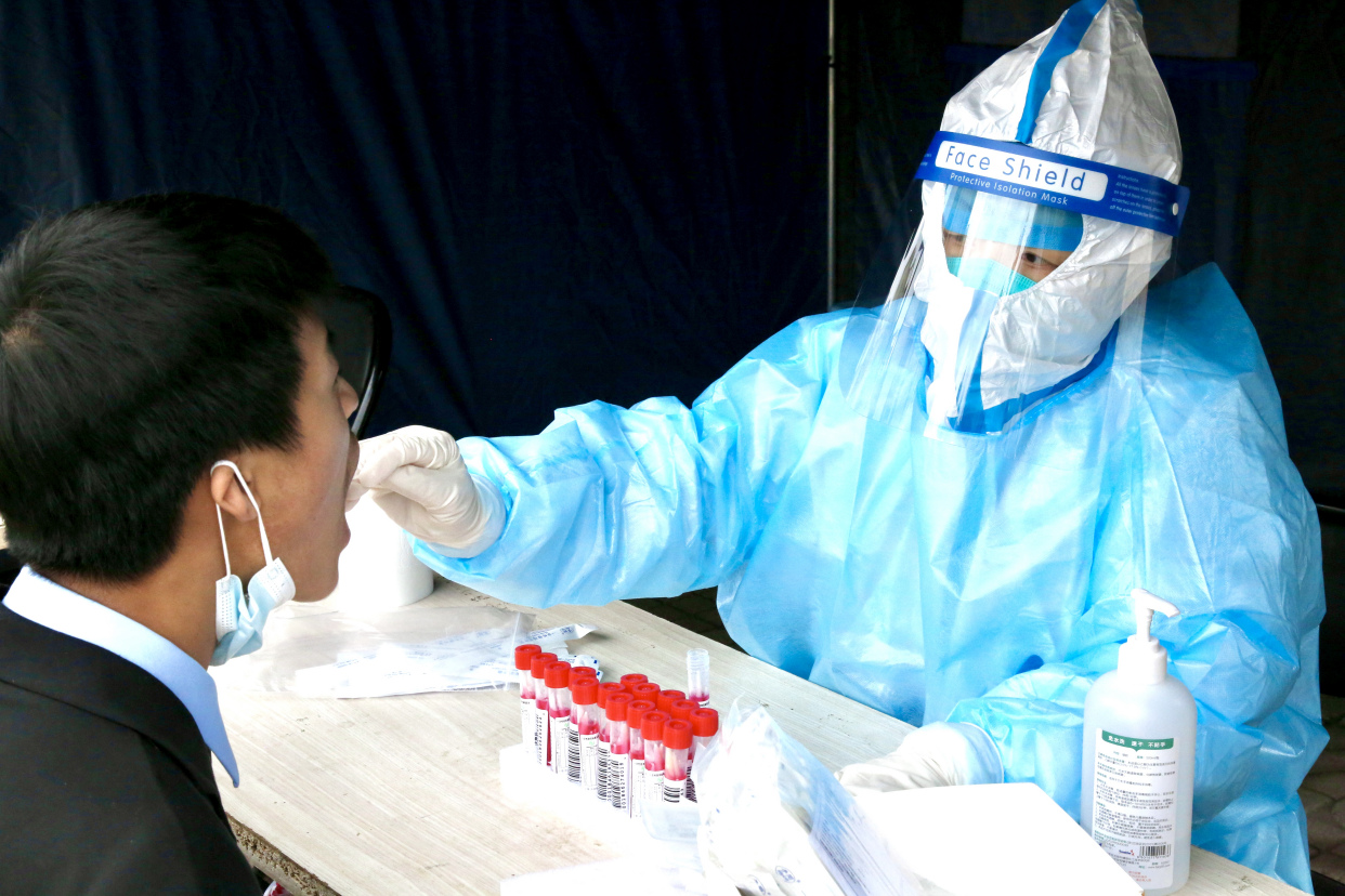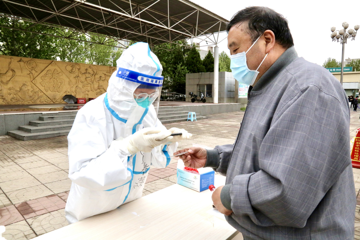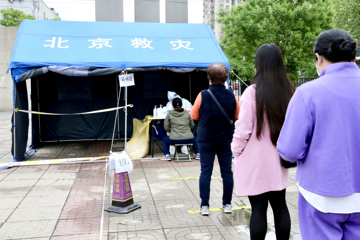 4月28日上午,记者来到丰台区看丹街道富锦嘉园社区核酸检测采样点。家住富锦嘉园2区的乌勉先生对记者说:“头天夜里就看见工作人员在这儿准备啦,搭棚子、摆桌子、拉警戒带,真是挺辛苦,作为居民我也配合大伙儿工作,早上一起来就下楼来做核酸了。”据了解,今日看丹街道辖区共开设59个核酸检测点、125个采样通道,采样点内部划分等候区、采样区、缓冲区、临时隔离区、医疗废物暂存区,60岁以上老人、孕妇、残障等群体设置绿色通道,独立采样。