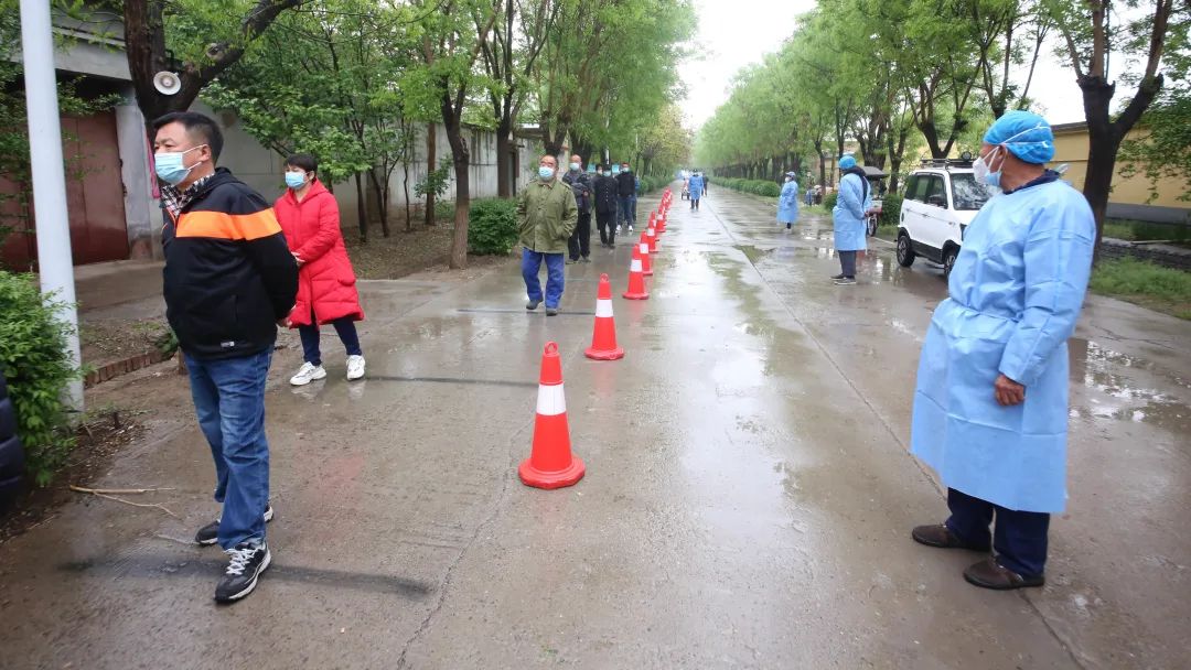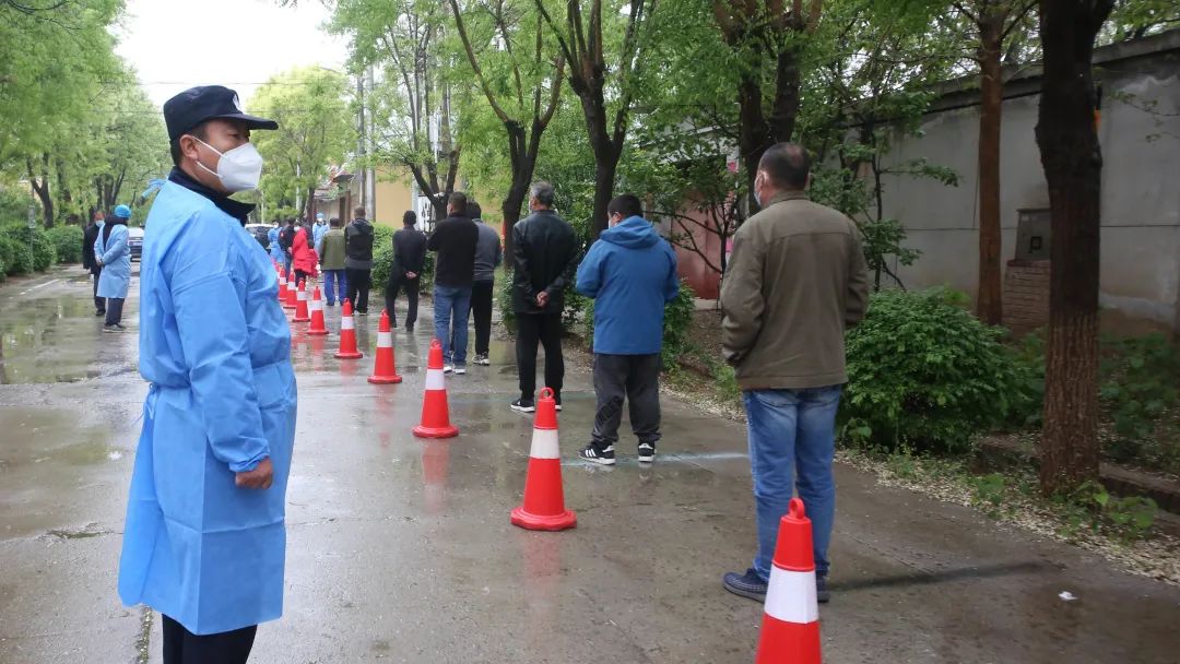 “请大家戴好口罩,保持2米间距......”随着广播的响起,魏善庄46个核酸检测点位统一开放。