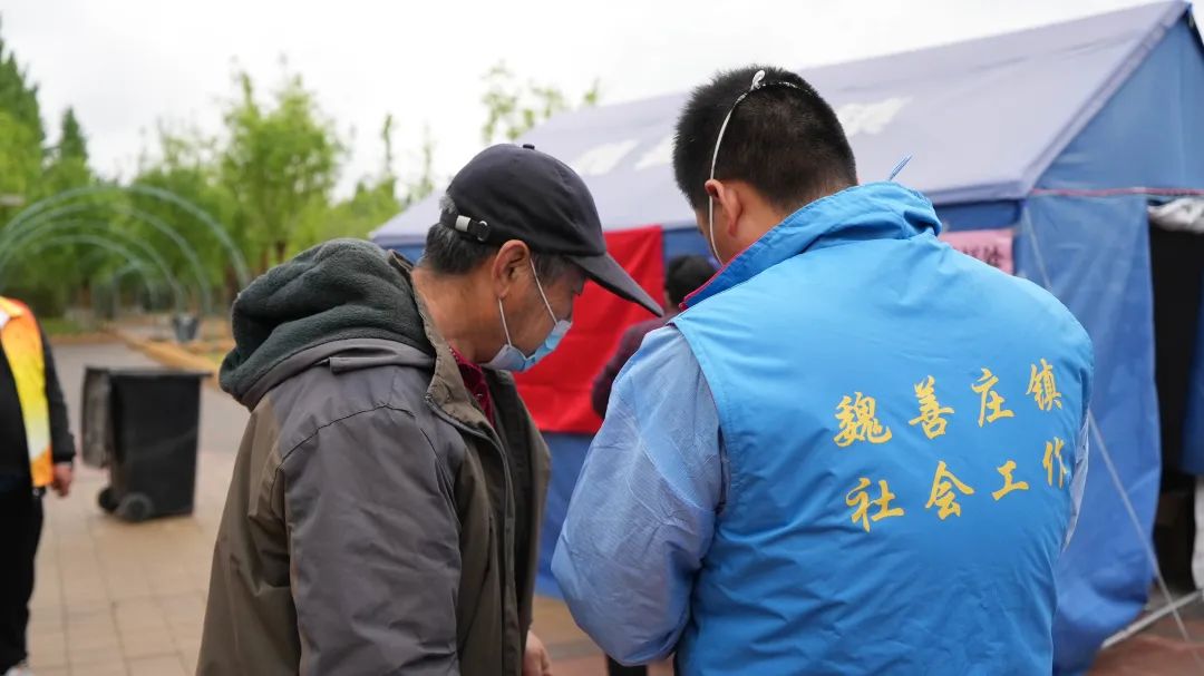 志愿者、社工团体以疫为令,纷纷响应,现场一抹抹黄色、一簇簇蓝色相互交织,成为一道亮眼的标志,凝聚着魏善庄强大合力。